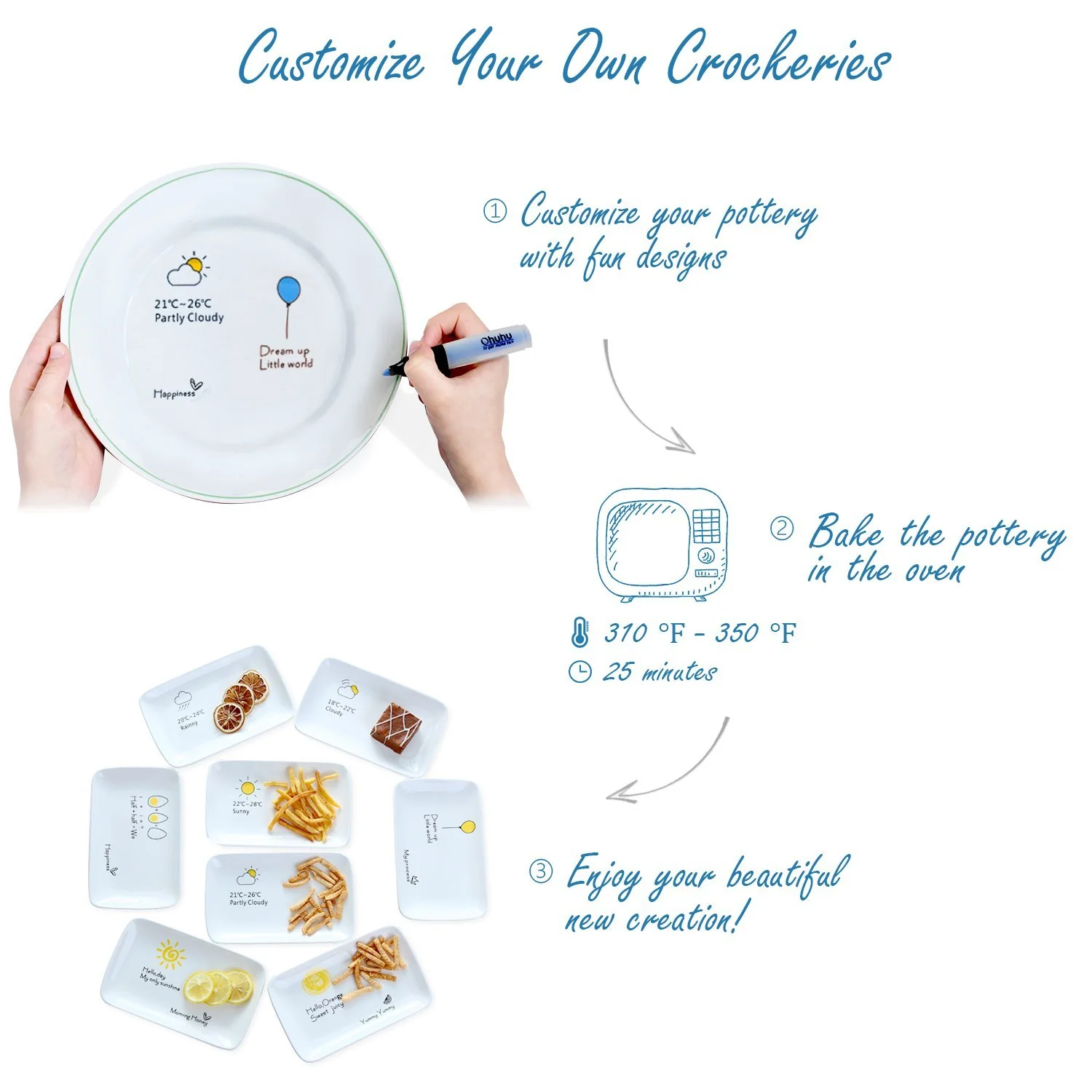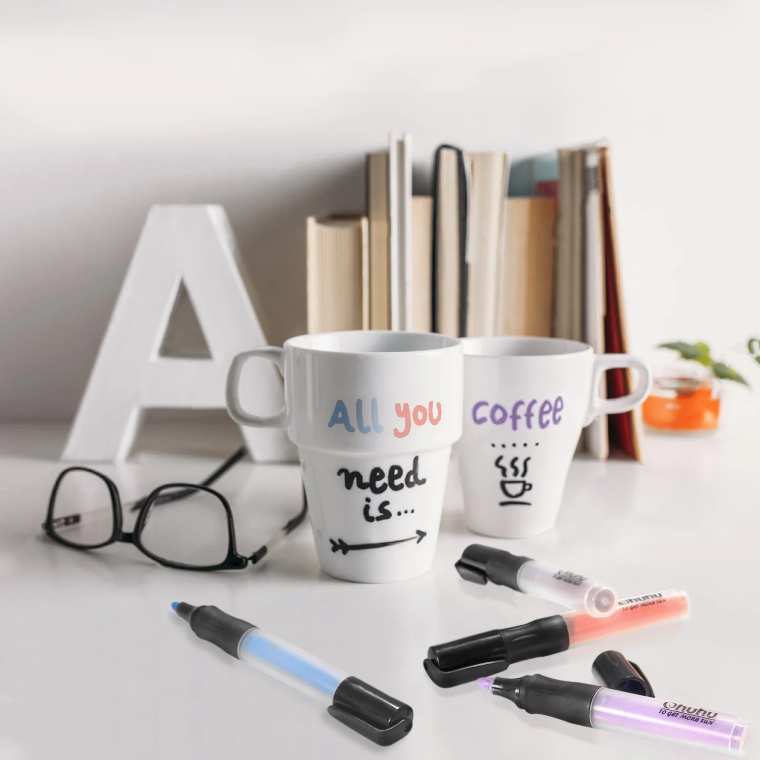 Decoración de Cerámica en casa: Con estos marcadores de pintura acrílica puedes diseñar tazas, platos de cerámica. La tinta no es tóxica y es libre de ácido, tiene los certificados ASTM-423 y EN 71-3, por lo que puedes utilizarla para decorar tus platos.
