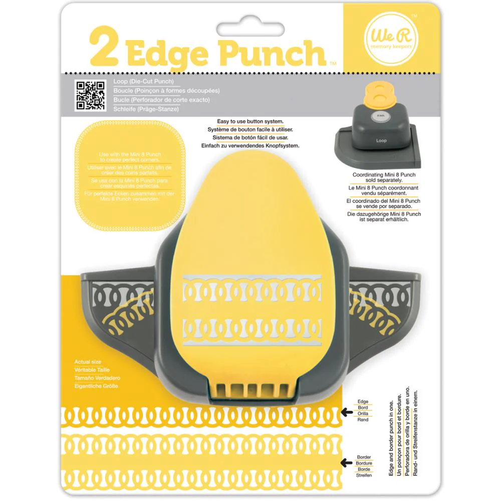 Perforadora de bordes que permite realizar decorado en la orilla del papel, o crear tiras decorativas. Botón para bloquear y desbloquear la perforadora para guardarla. En la parte inferior de la perforadora puedes cambiar el botón para realizar un borde o una tira decorativa. Una vez realices la primera perforación, sigue el patrón tal y como aparece en los laterales de la perforadora.