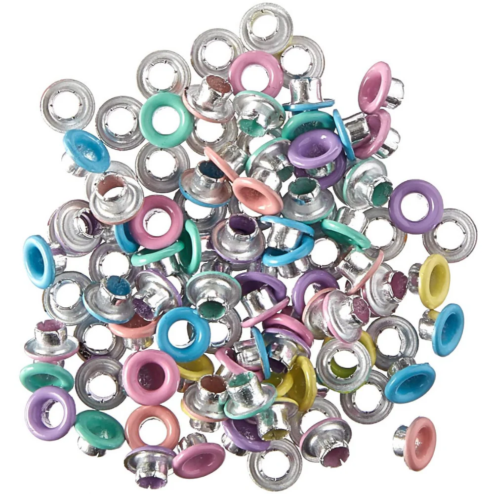 - 84 ojillos de colores alegres primaverales que miden 3 mm (2/16″)
