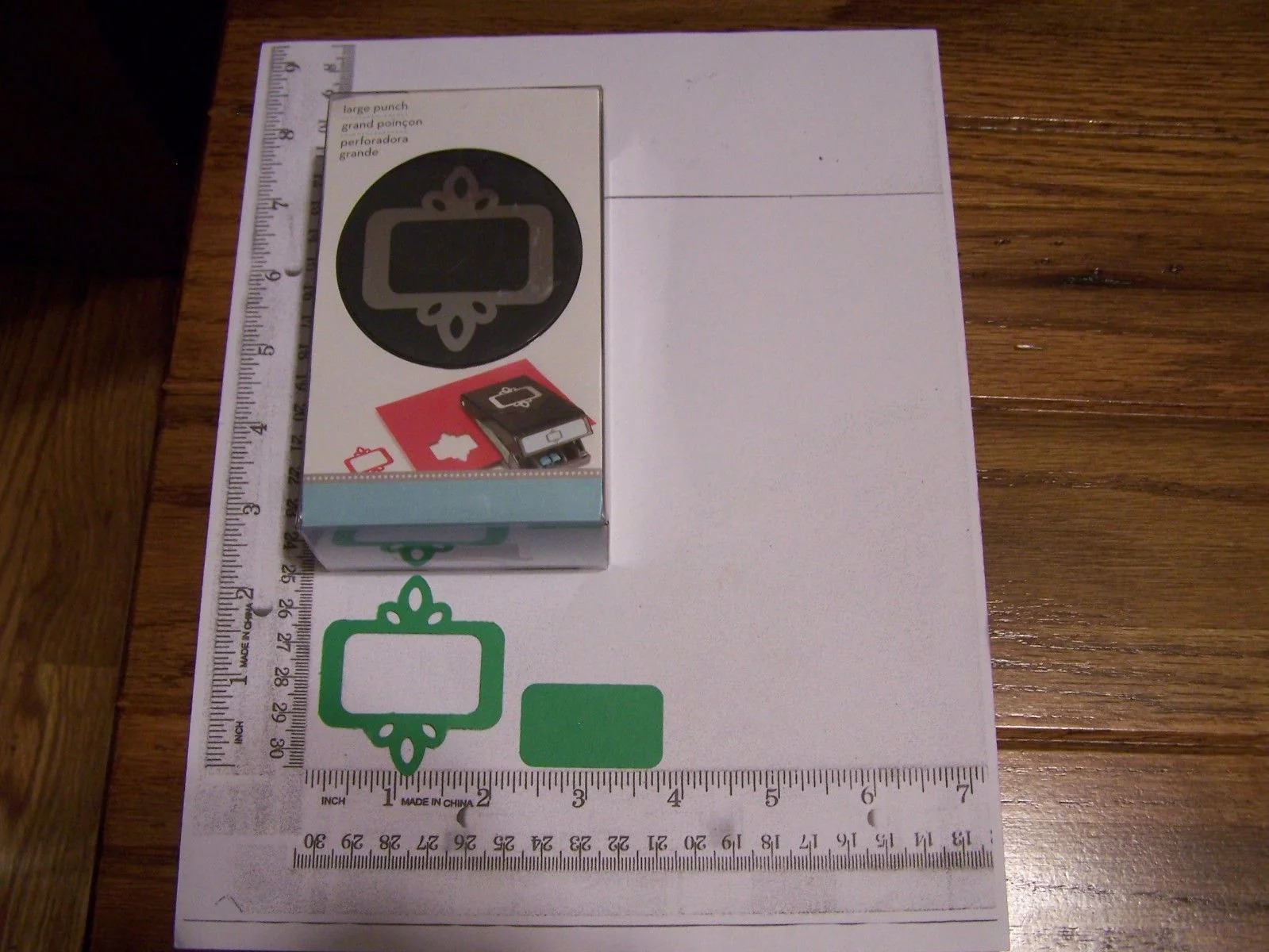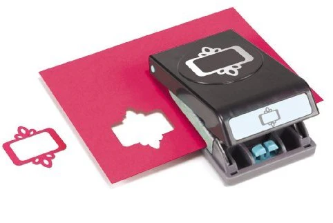 Perforadora de papel y cartulina para hacer etiquetas y marcos decorativos.
