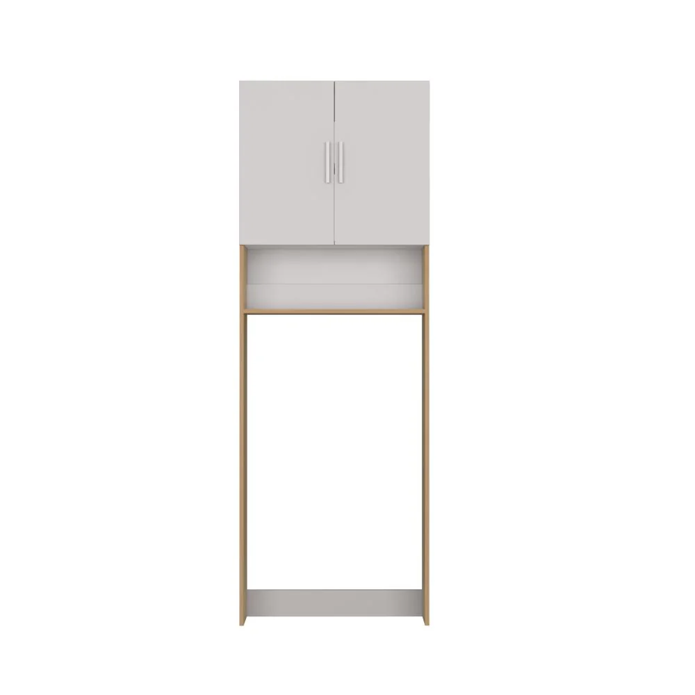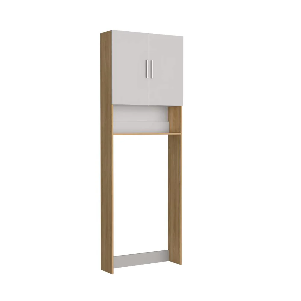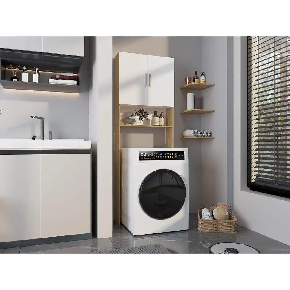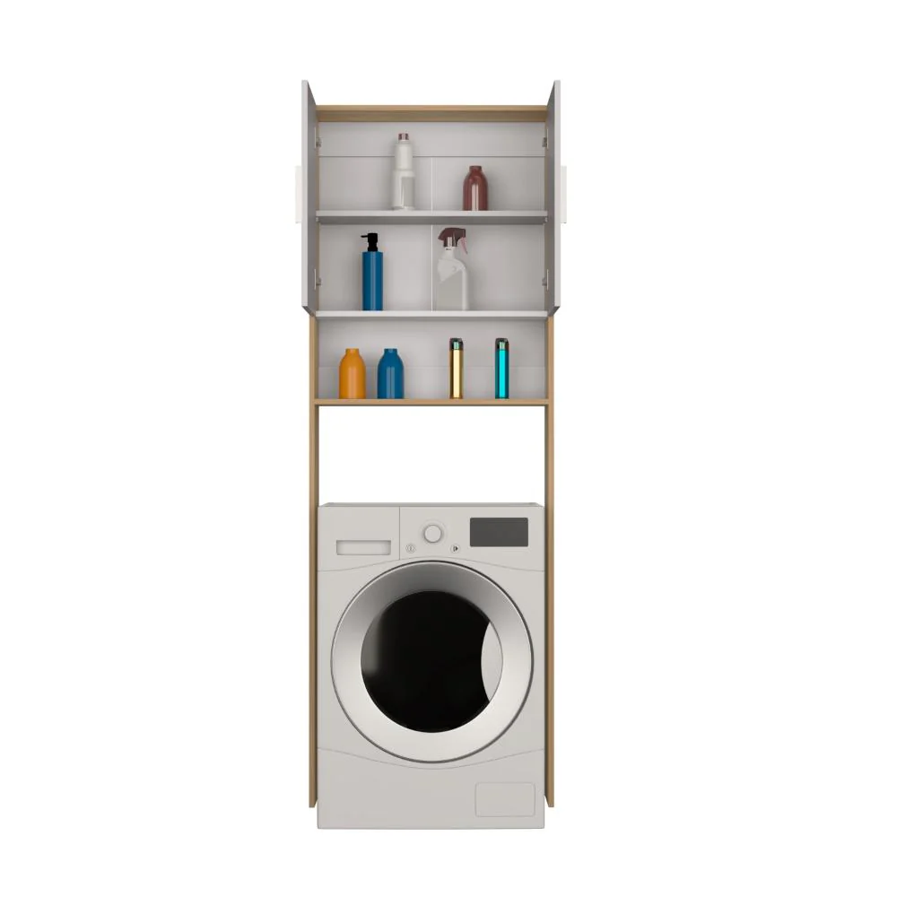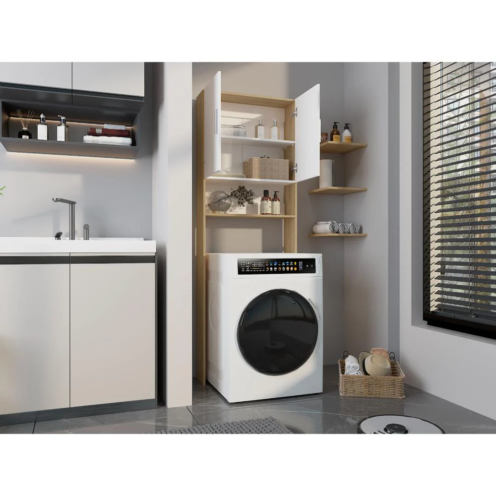 Ahorrador de Espacio para Lavadora, Blanco Duqueza y Fresno, con dos puertas y tres entrepaños