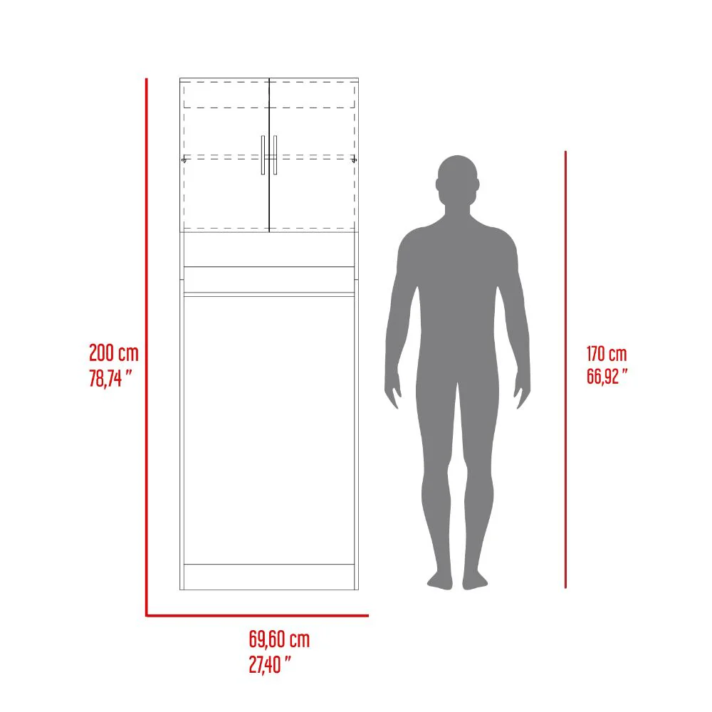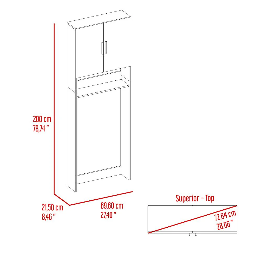 Ahorrador de Espacio para Lavadora, Ahorrador de espacio 69cm ancho, espacio para elementos de aseo, manija metálica y puertas abatibles.
