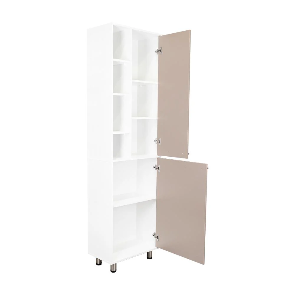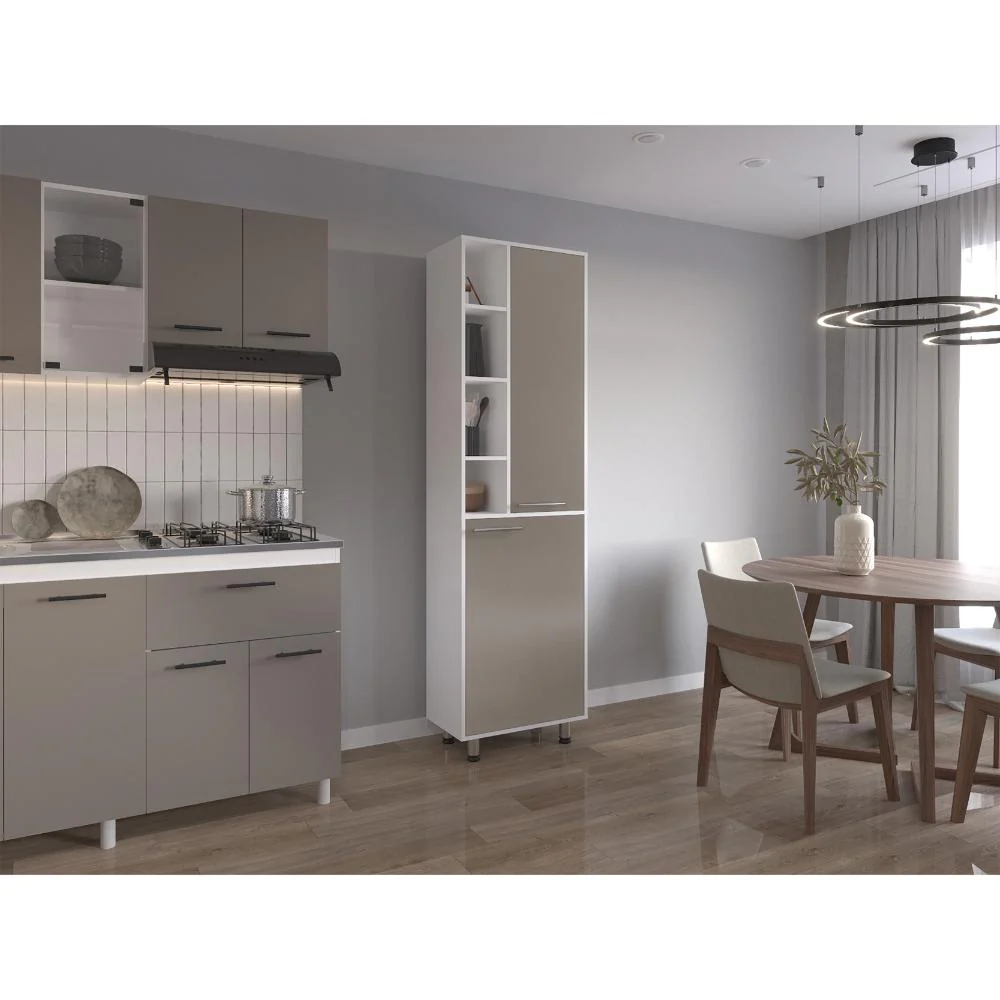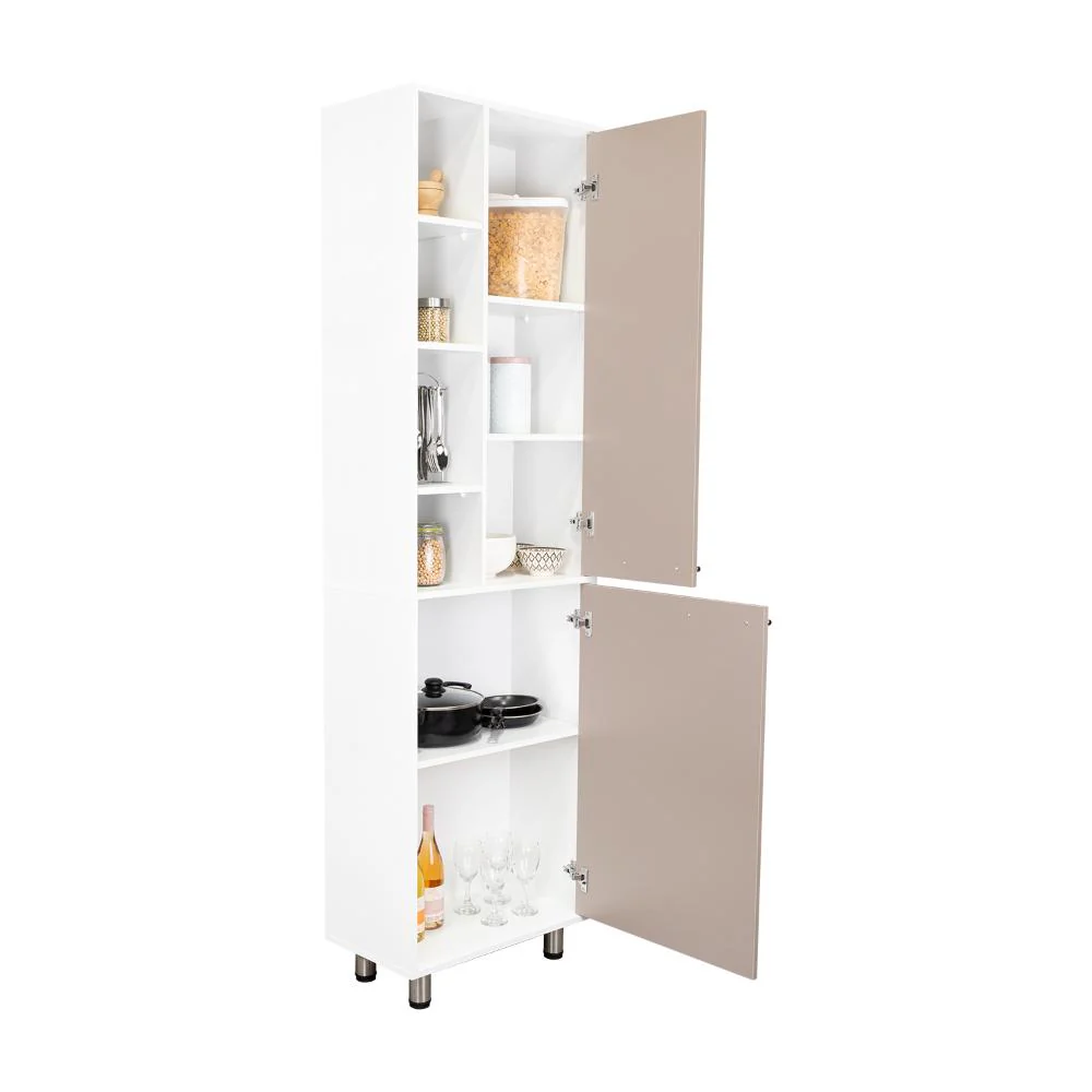 Elaborado en Madera aglomerada MDP, recubierta con láminas melamínicas de excelente calidad, en color Blanco Duqueza y Cocoa