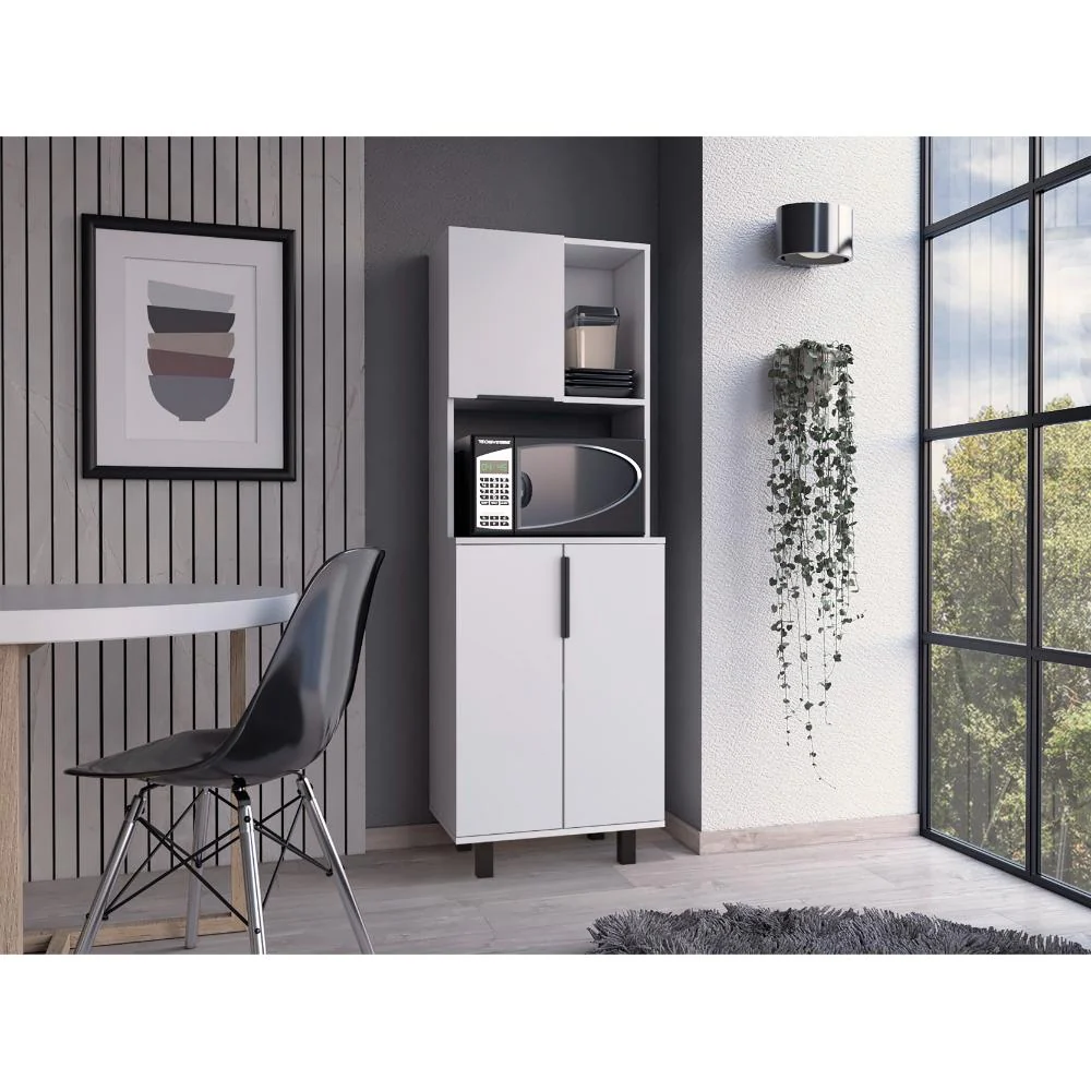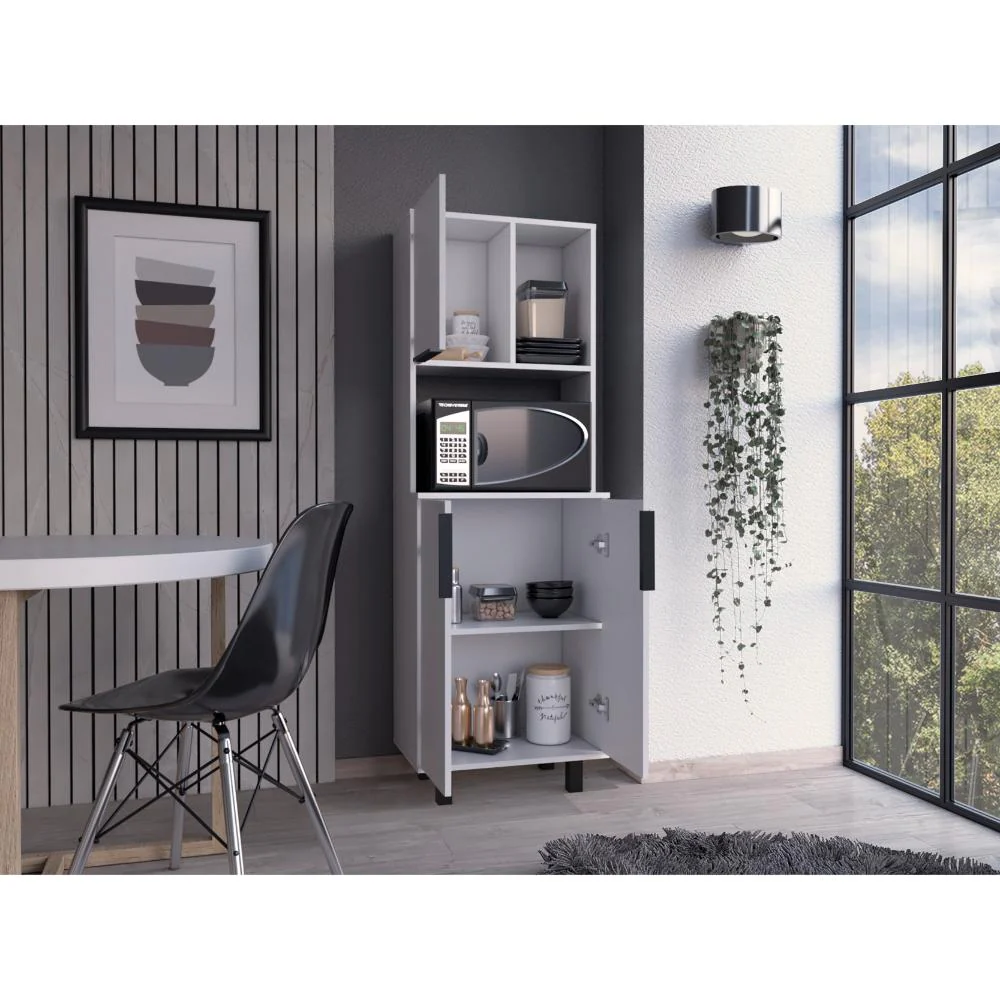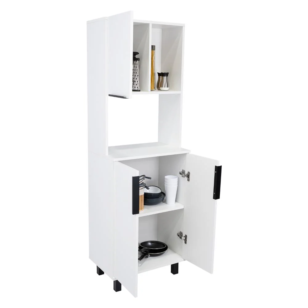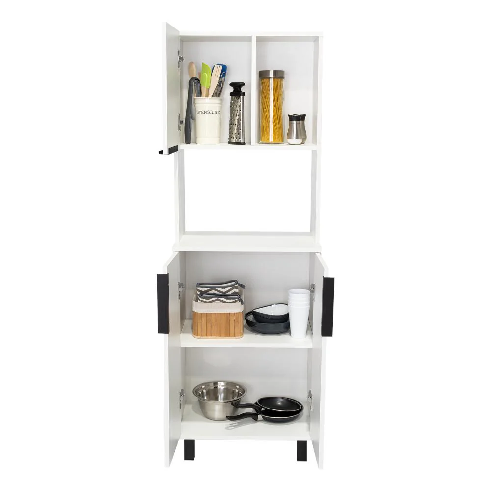 Alacena, con amplios espacios para almacenamiento, patas y manijas en acero, diseño moderno, facil armado.