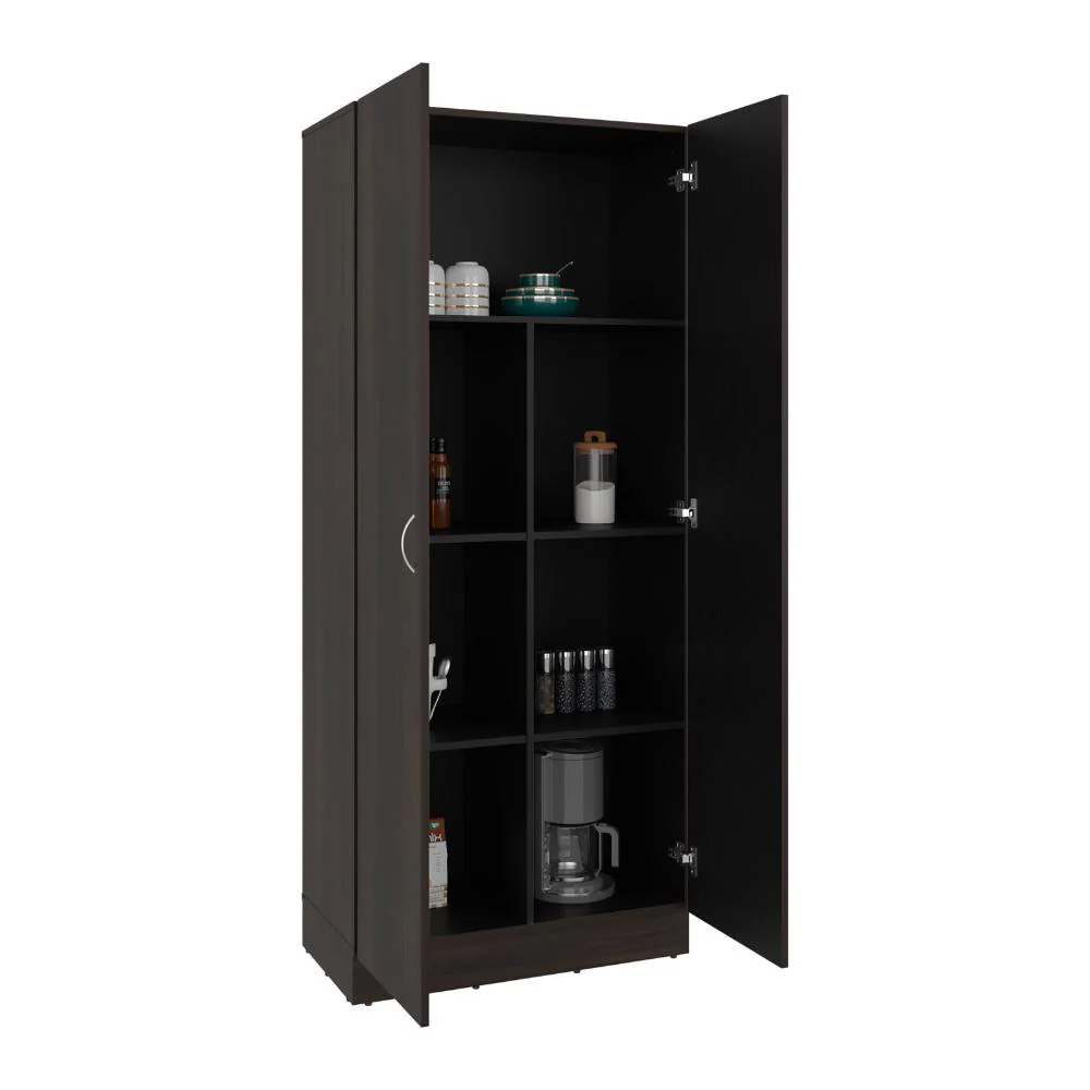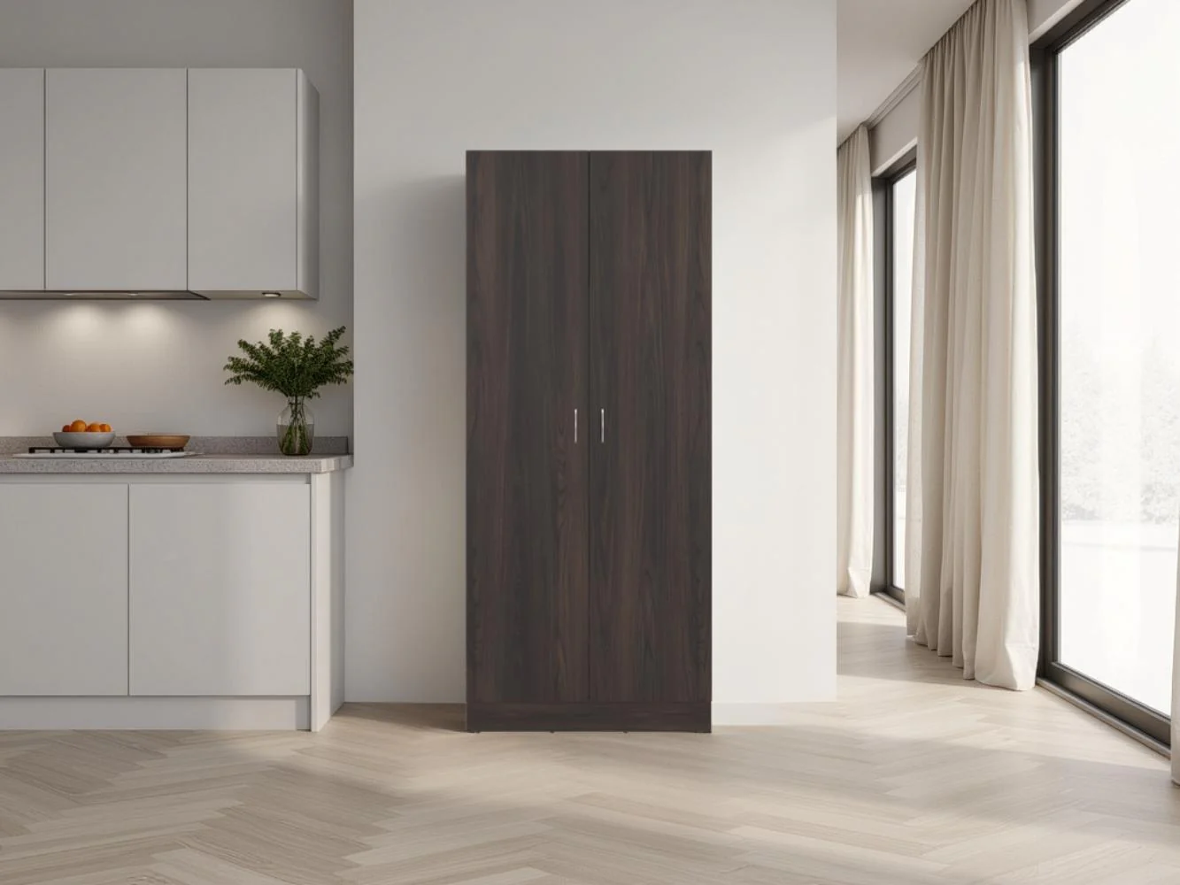 Elaborado en Madera aglomerada MDP, recubierta con láminas melamínicas de excelente calidad, en color Nogal Europeo y Wengue.