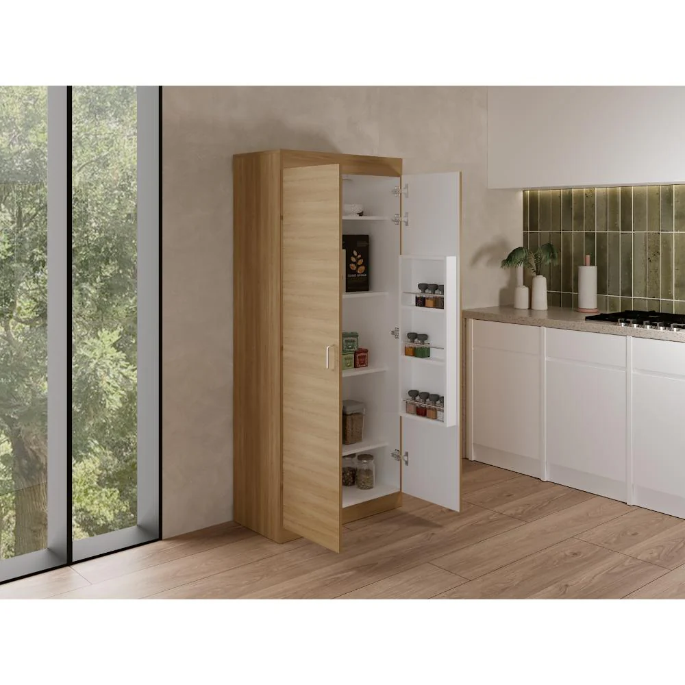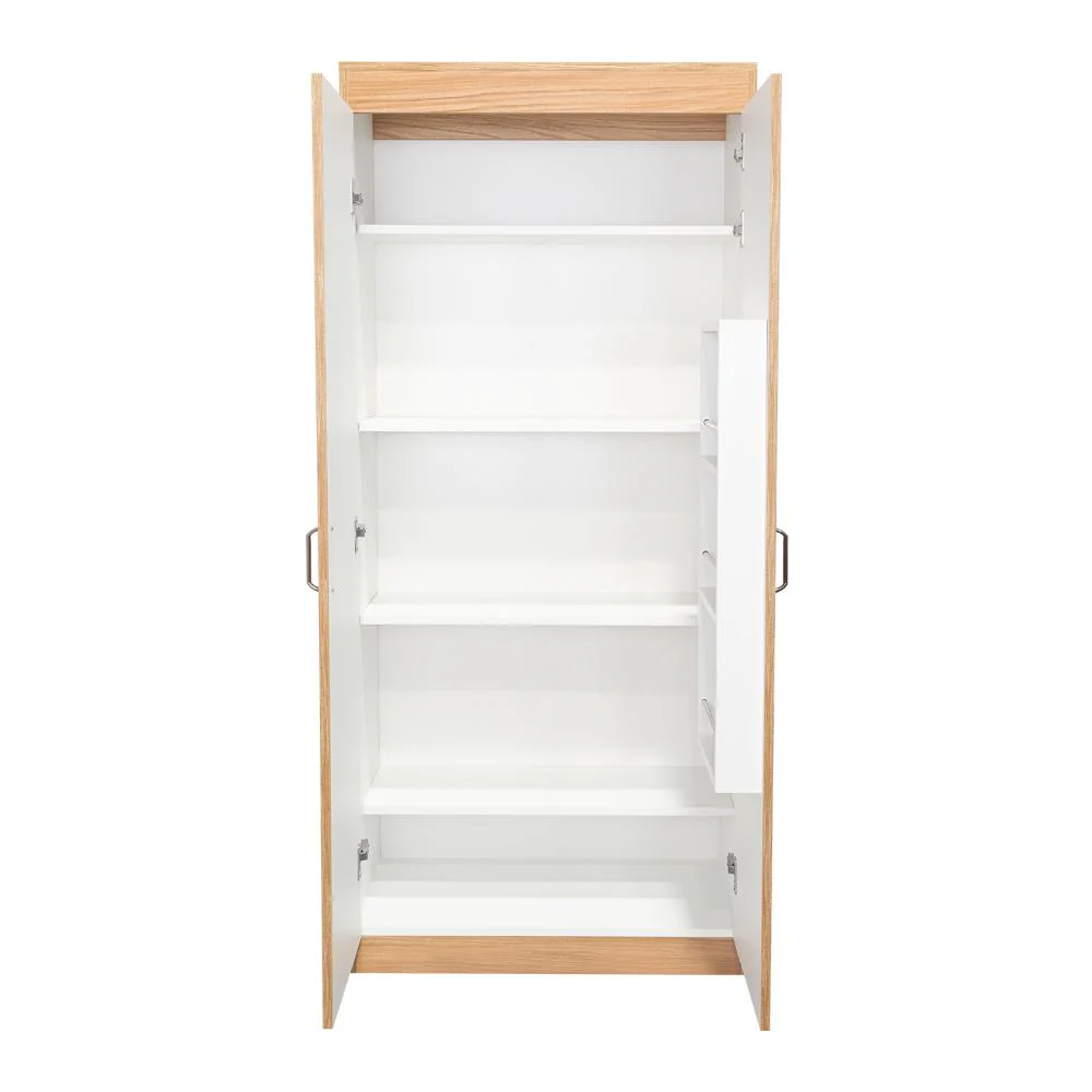 Alacena Multiusos, con 4 entrepaños, amplios espacios para guardar utensilios., estante adicional para mayor capacidad de almacenamiento, y, manijas metálicas.