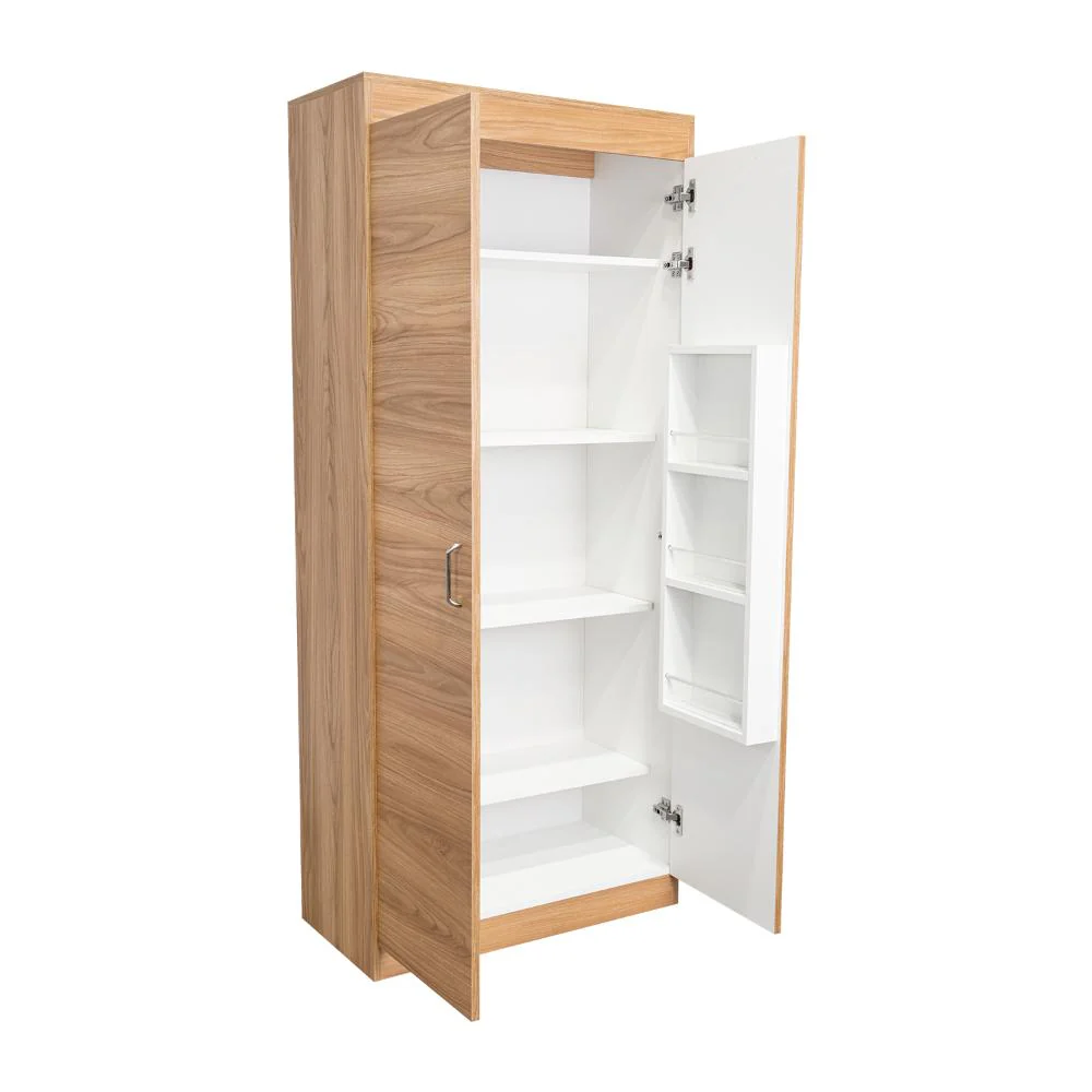Elaborado en Madera aglomerada MDP, recubierta con láminas melamínicas de excelente calidad, en color Fresno Europeo y Blanco.