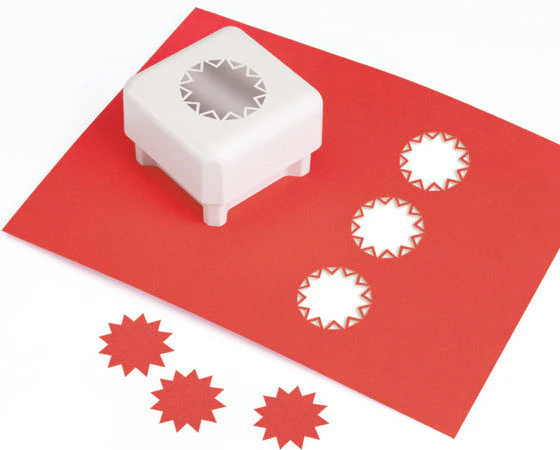 Con la perforadora de Martha Stewart All Over the Page, puedes perforar en toda la superficie de la hoja. Solo elige en que parte de tu papel quieres la figura, conecta las puntas chatas de la perforadora dejando el papel en el centro, baja con la mano y listo!