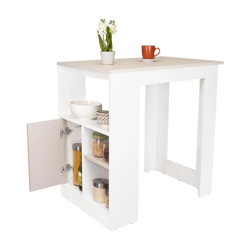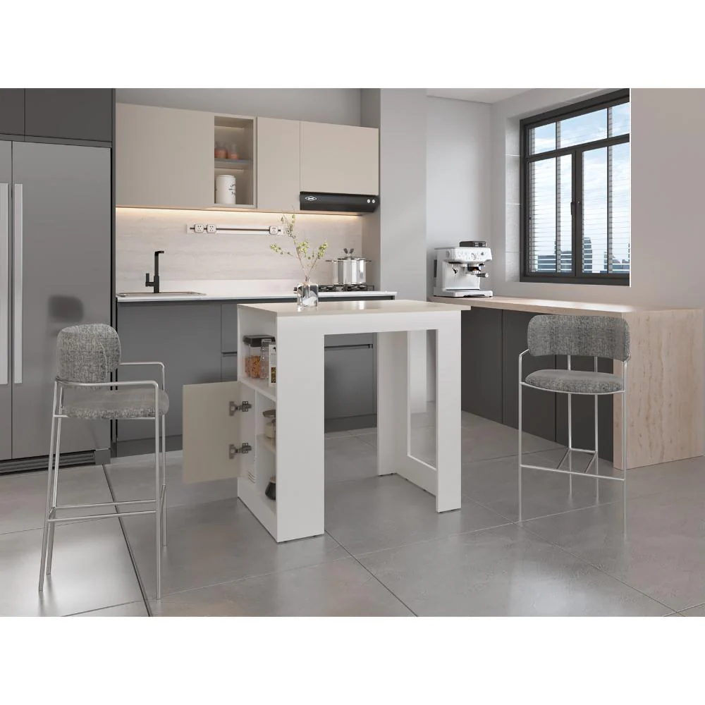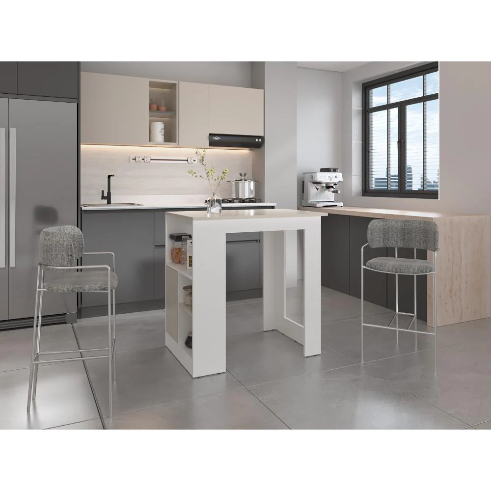 Barra de Cocina, con un diseño moderno, 2 entrepaños y espacio para colocar objetos.