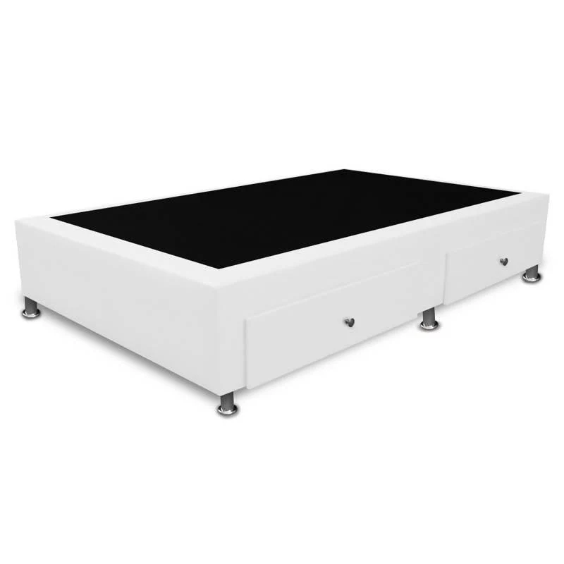 Estructura en madera nogal seca e inmunizada, 2 cajones con gran capacidad de almacenaje, patas cilíndricas cromadas metálicas antideslizantes y anti rayones para el cuidado de sus pisos, altura 40 cm. Tapizado en microfibra de alta calidad y resistencia, Disponible en variedad de colores.