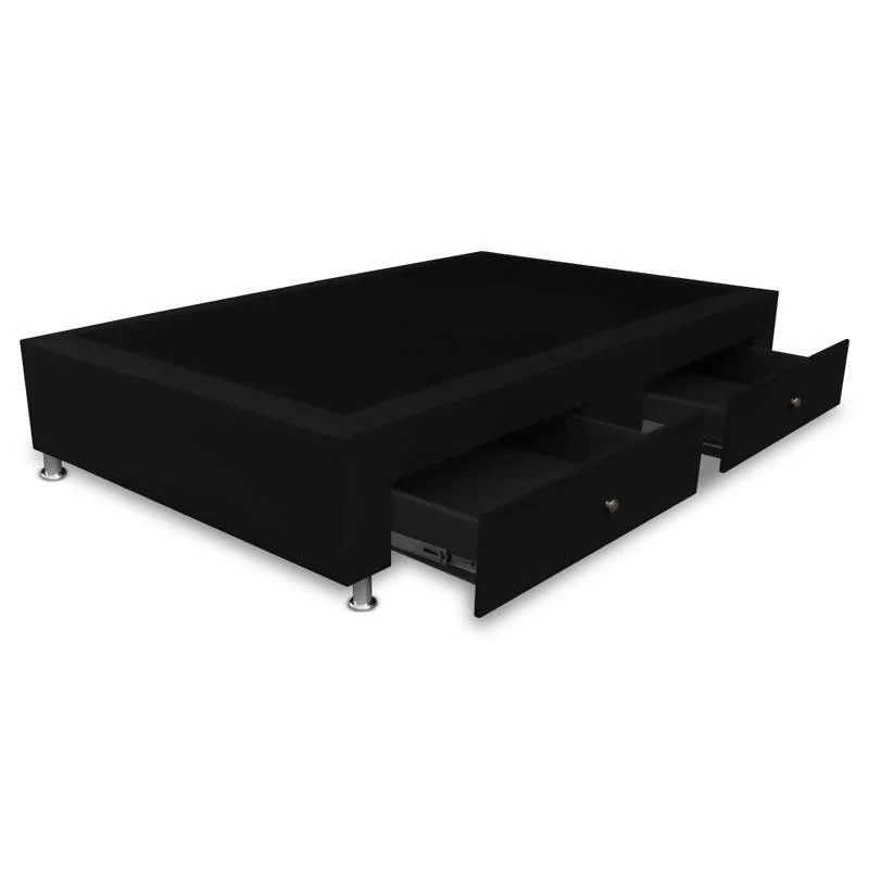 Estructura en madera nogal seca e inmunizada, 2 cajones con gran capacidad de almacenaje, patas cilíndricas cromadas metálicas antideslizantes y anti rayones para el cuidado de sus pisos, altura 40 cm. Tapizado en microfibra de alta calidad y resistencia, Disponible en variedad de colores.