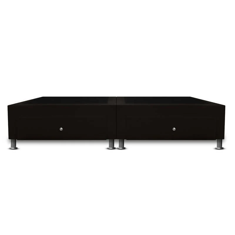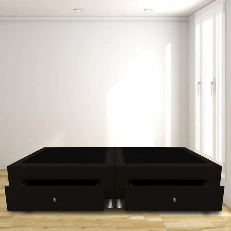 Estructura en madera nogal seca e inmunizada, 2 cajones con gran capacidad de almacenaje, patas cilíndricas cromadas metálicas antideslizantes y anti rayones para el cuidado de sus pisos, altura 40 cm. Tapizado en microfibra de alta calidad y resistencia, Disponible en variedad de colores.