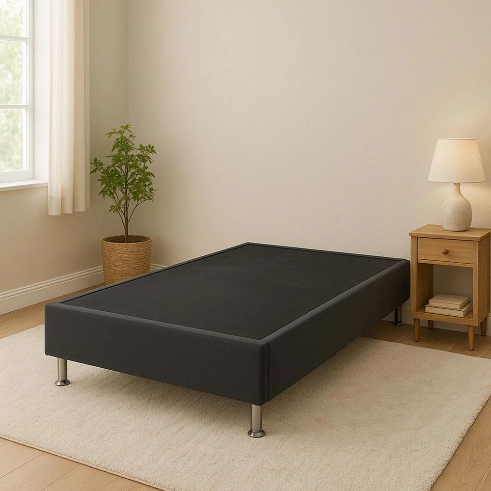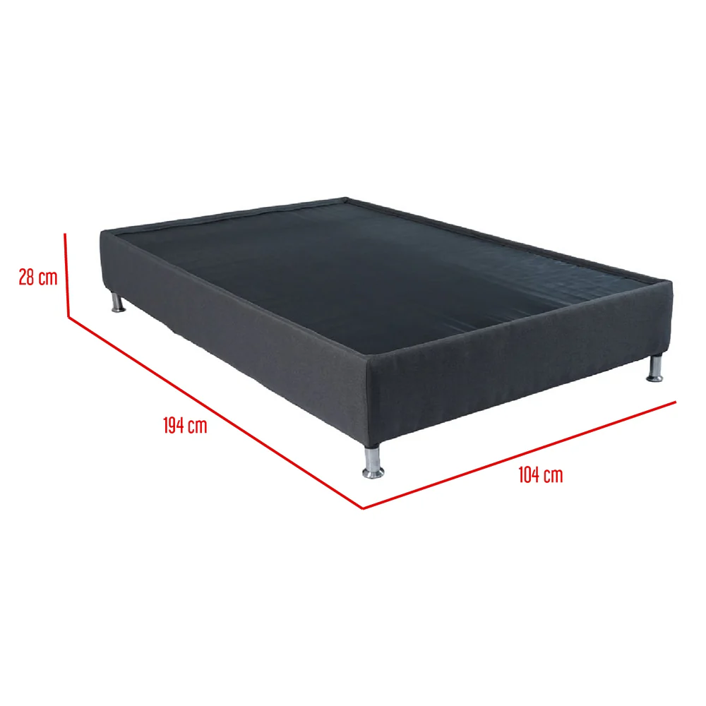 Basecama Sencilla Toledo Gris tiene una pestaña de 3 cm antideslizante para el colchón, tiene una estructura de madera pino sanitizada para mayor durabilidad, relleno con espuma de alta densidad D18 número 1 que brinda confort y comodidad. Está tapizado con tela Poliéster agradable al tacto y fácil de limpiar. Superficie antideslizante al contacto con el colchón. Cuenta con patas en acero de 10 cm atornillables y con base antideslizante que no rayan el piso.