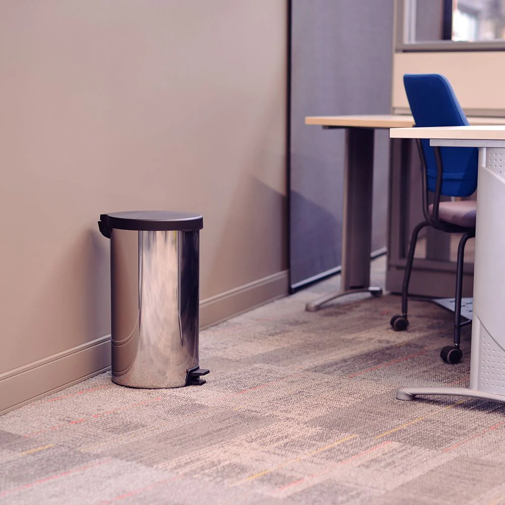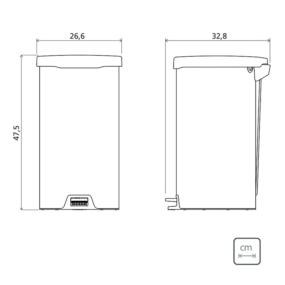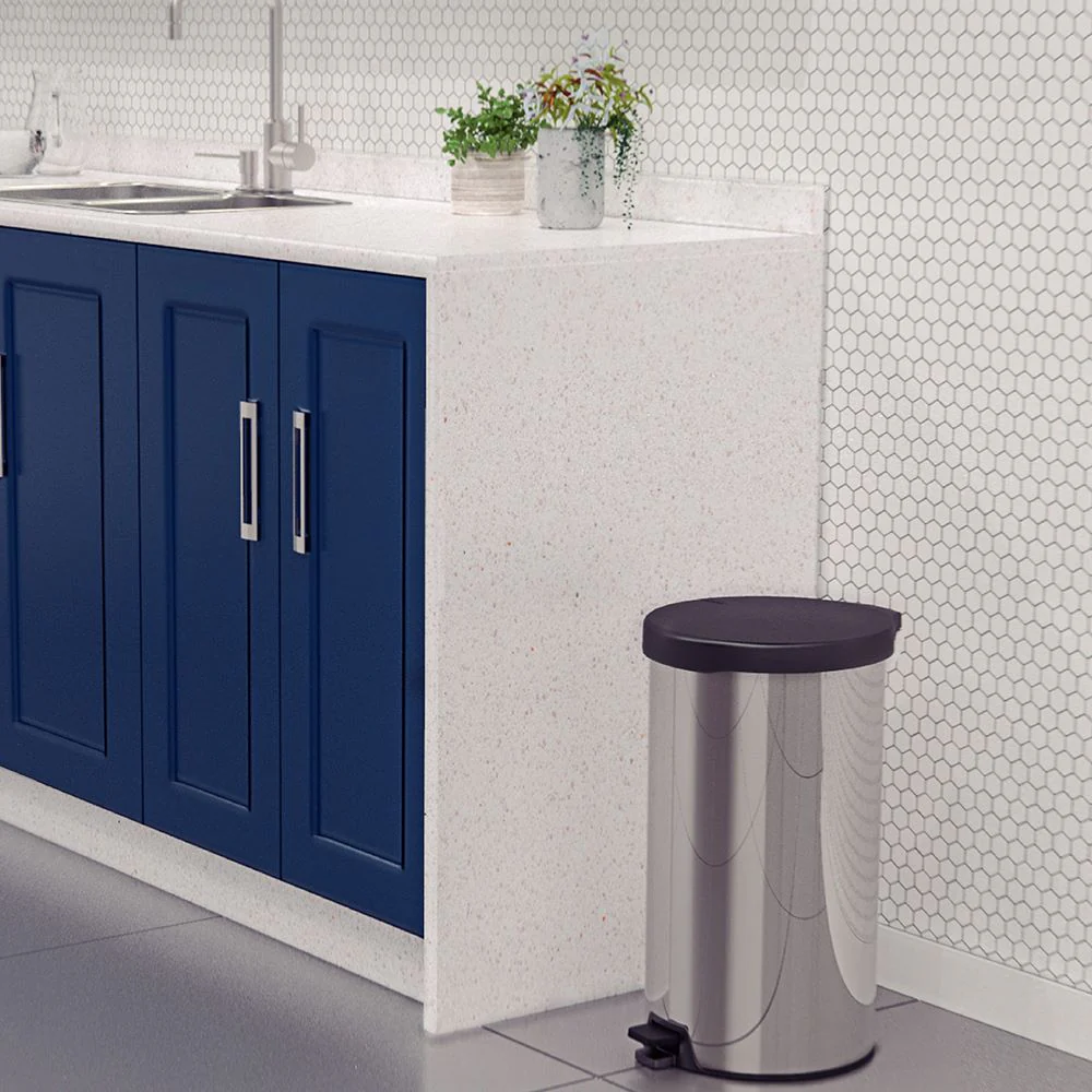 Basurero, elaborado en Acero inoxidable, AISI 430 en material plástico tapa, pedal y base, espesor de 0,4 mm en terminación pulida. Tratamiento antihuellas: No