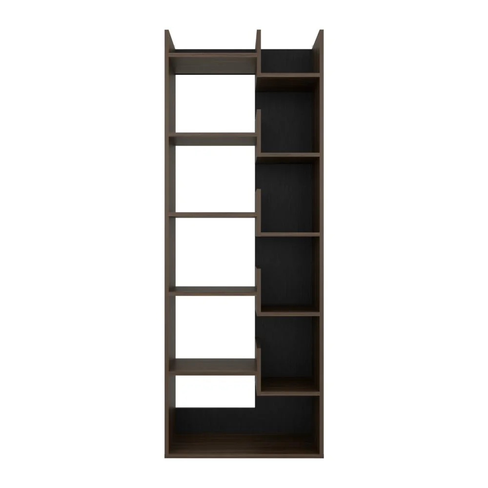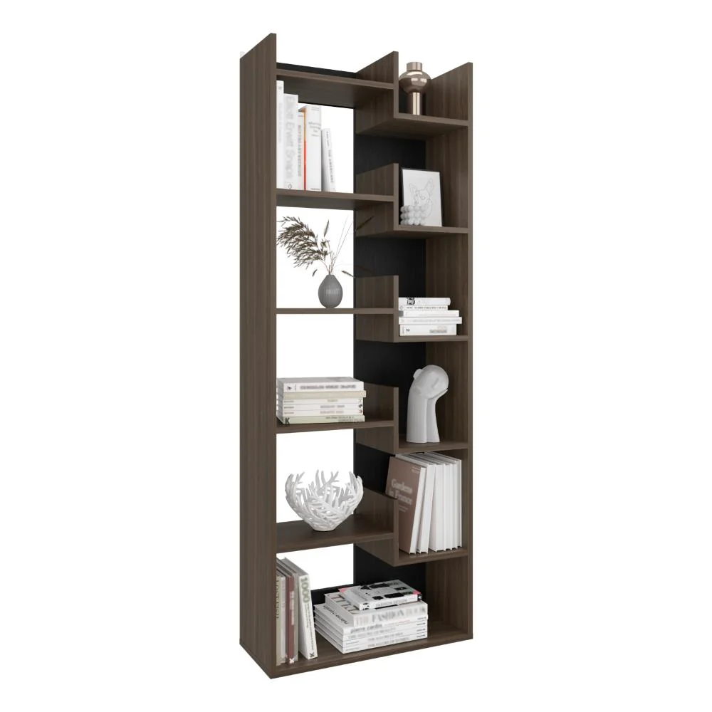 Biblioteca, con múltiples entrepaños y espacios para guardar y poner objetos.