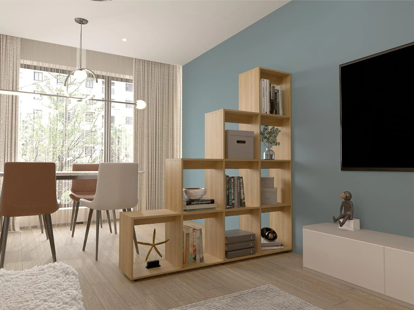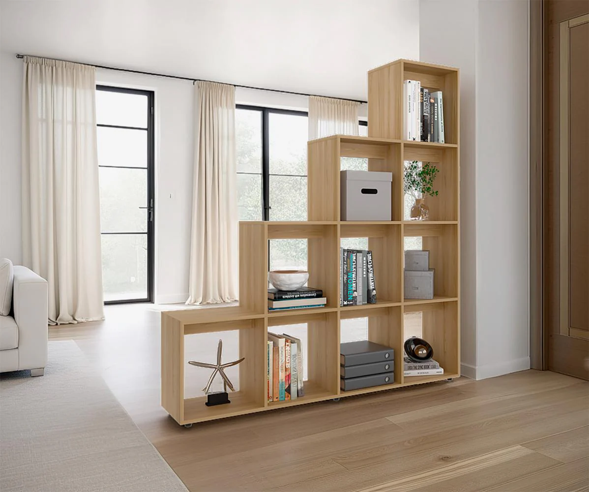 Biblioteca, con excelente capacidad de almacenamiento, espacio para libros y objetos decorativos, permite ubicarse como divisor de espacios, fácil instalación y diseño contemporáneo.