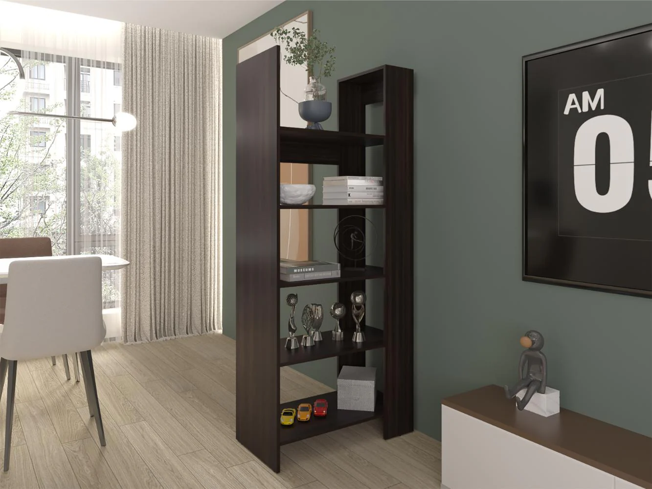 Biblioteca, con amplios espacios para ubicar libros, objetos decorativos y es de facil instalación