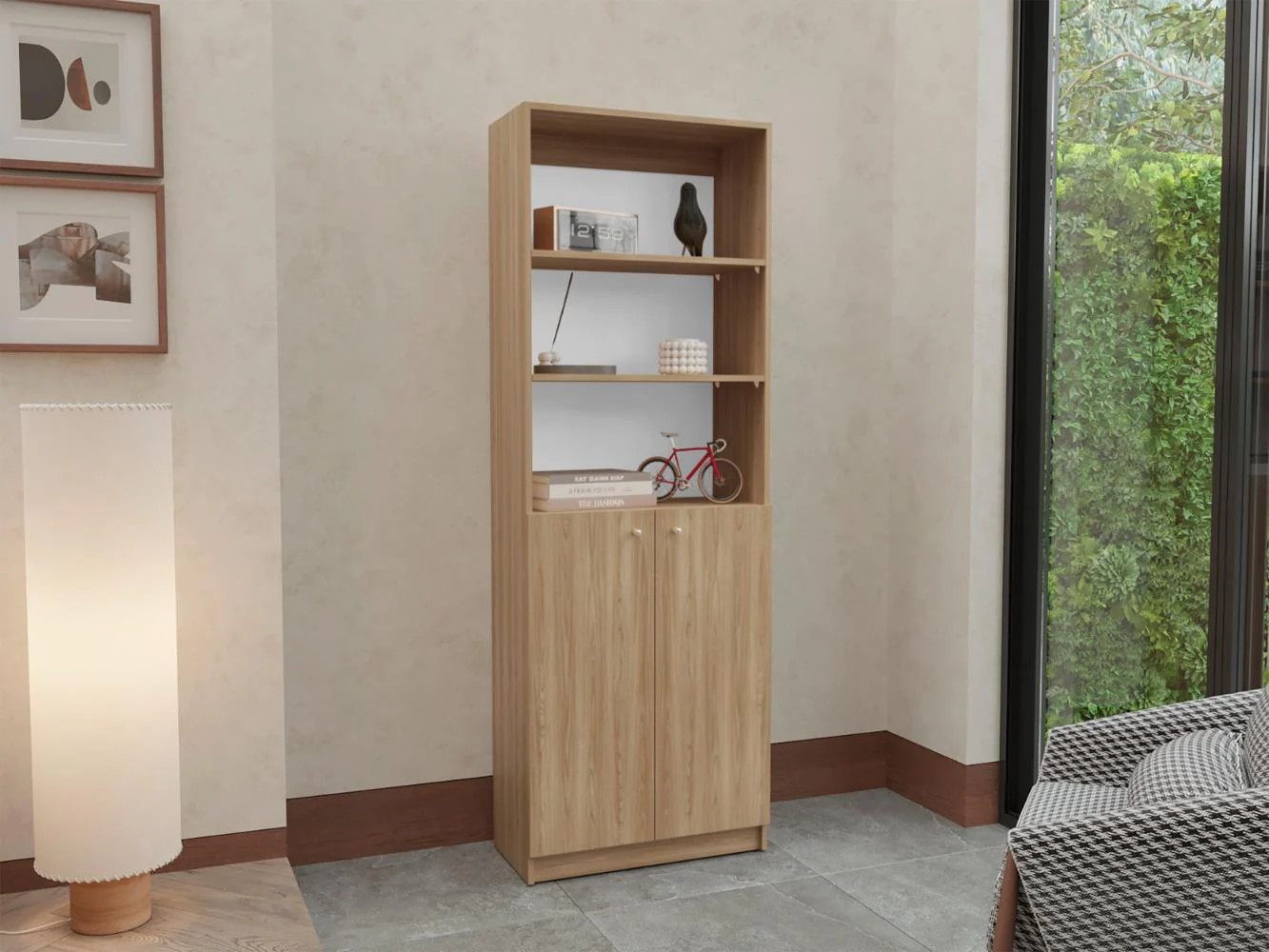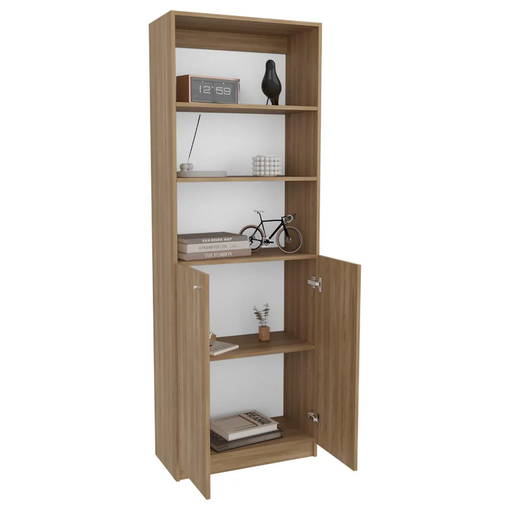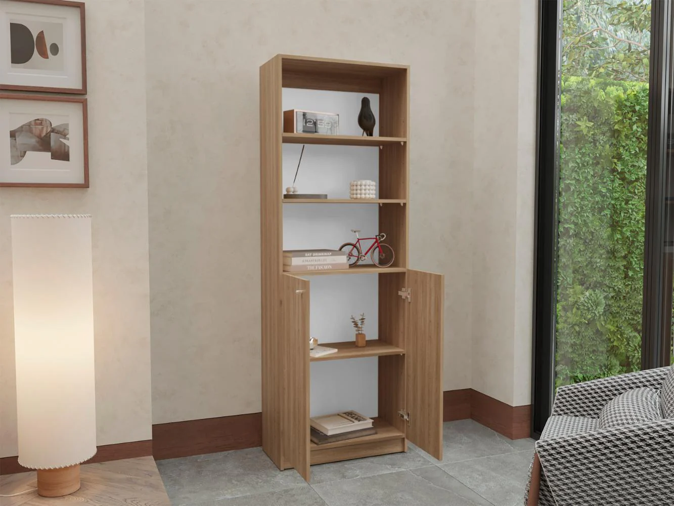 Biblioteca, con espacio para libros y objetos decorativos, dos puertas abatibles, de fácil armado e instalación.