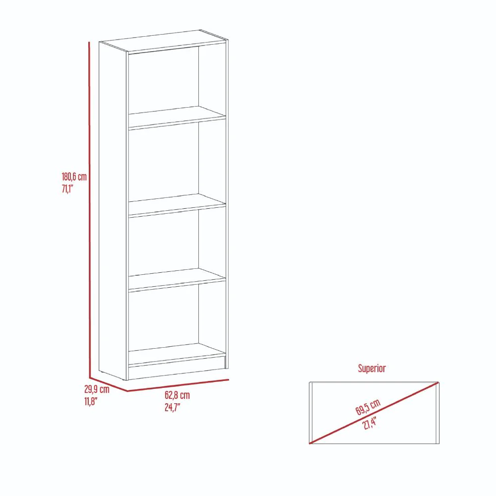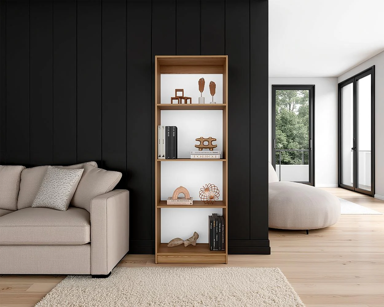 Biblioteca, con cuatro entrepaños para ubicar libros y elementos decorativos.
