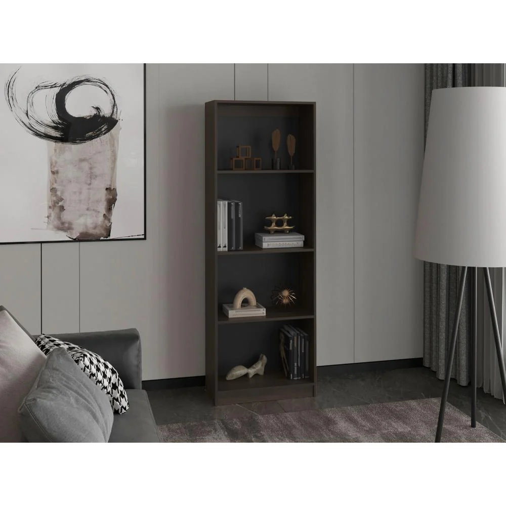 Biblioteca, con cuatro entrepaños para ubicar libros y elementos decorativos.