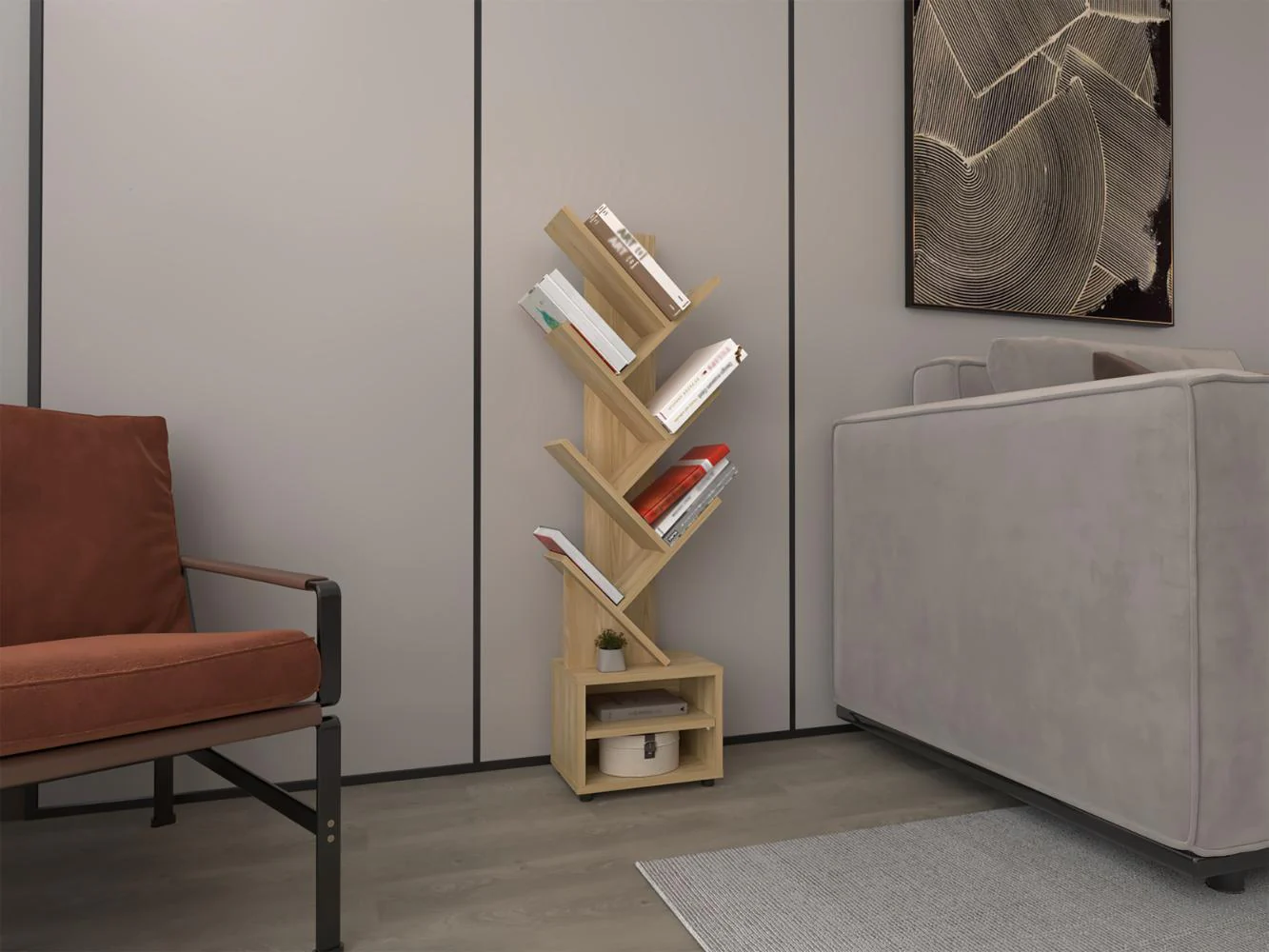 Biblioteca, con multiples espacios para ubicar objetos decorativos y libros, es de facil instalación.
