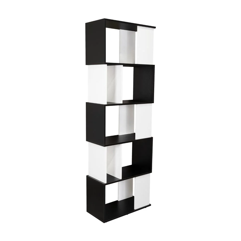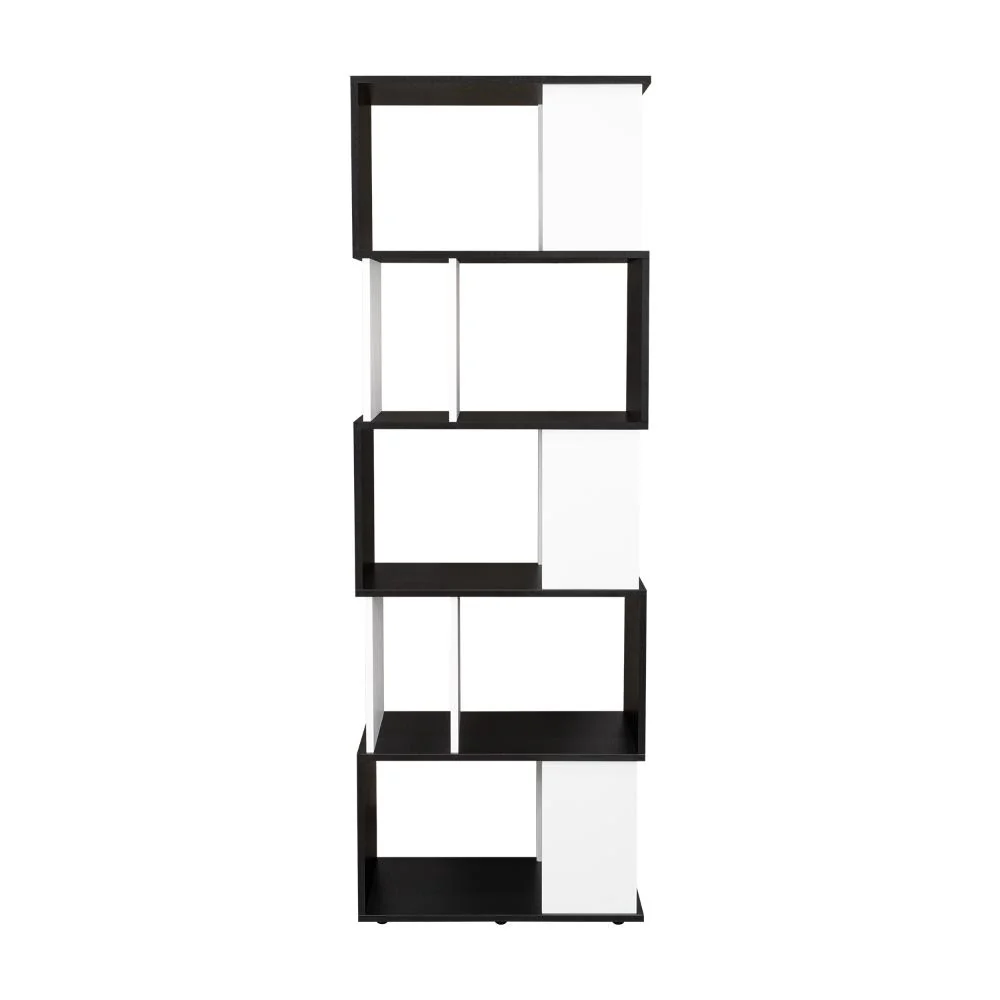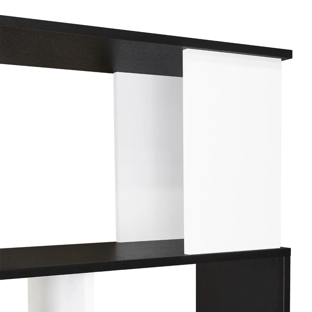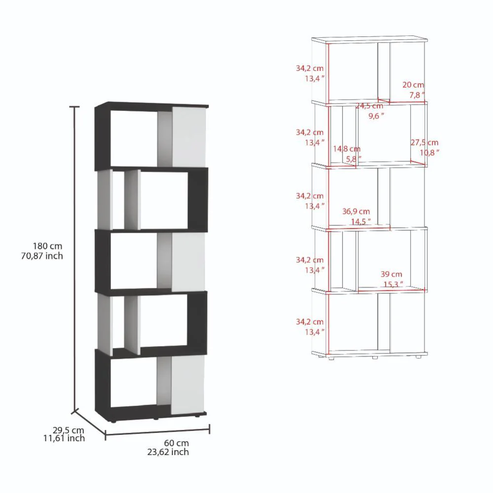 Biblioteca, con diseño minimalista, compartimientos para objetos de estudio o decorativos, múltiples entrepaños y superficies para ubicar objetos.