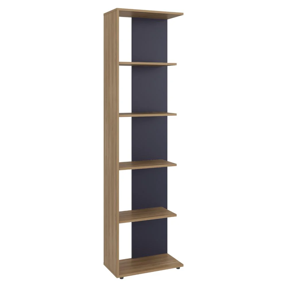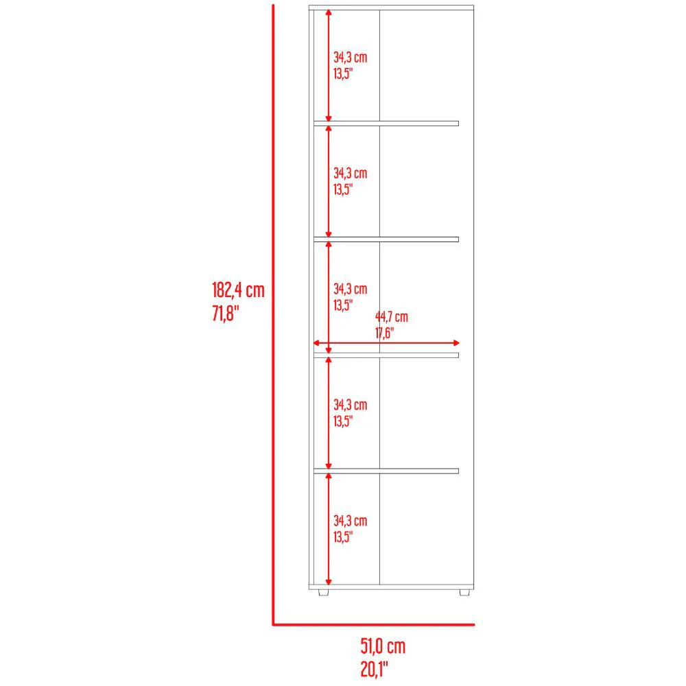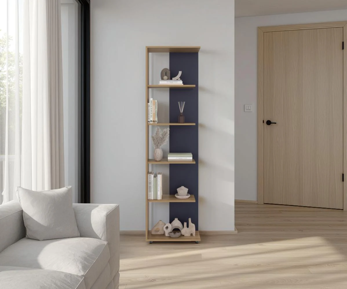Biblioteca, con espacios para libros y objetos decorativos. y cinco entrepaños