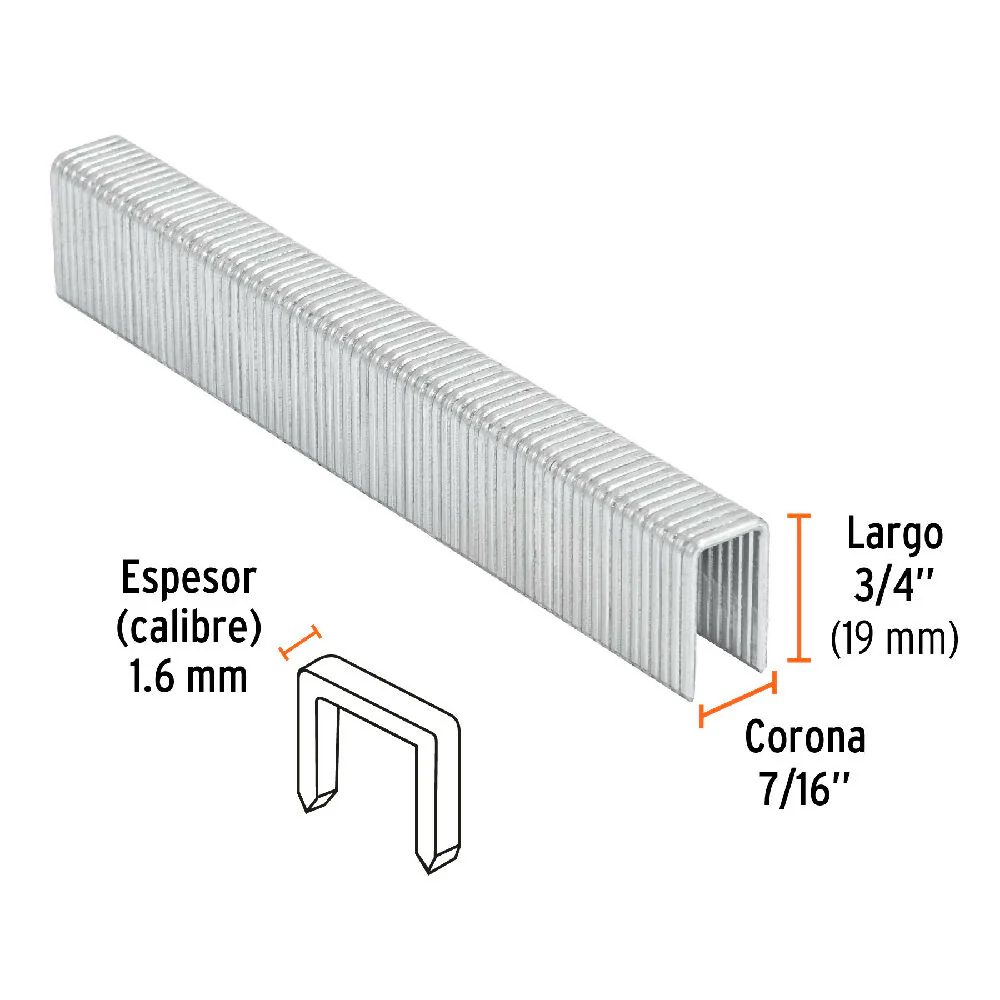 Caja con 1000 grapas corona 7/16″ cal. 16, 19 mm para ENNE-160, Truper