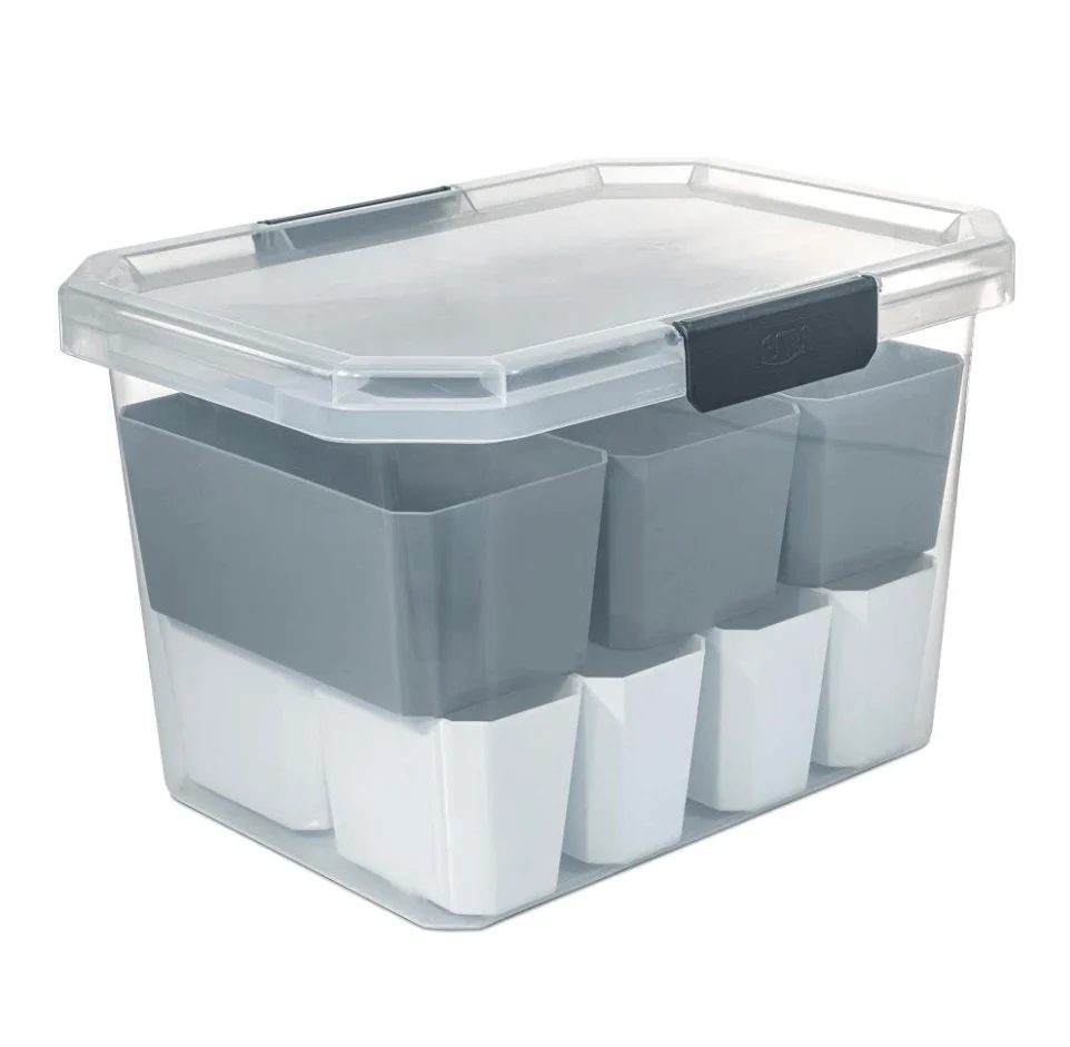 Multibox es un nuevo concepto de organización que te permite modular dentro de las cajas organizadoras de Estra y lograr una mayor optimización del espacio. Contiene: *Caja organizadora esttrabox 20 Litros *8 contenedores 0,5L *3 contenedores 2L . Es un producto ideal para guardar elementos que necesiten clasificacion, juguetes, herramientas, articulos de aseo entre otros. Material: Polipropileno *La caja viene sin manija