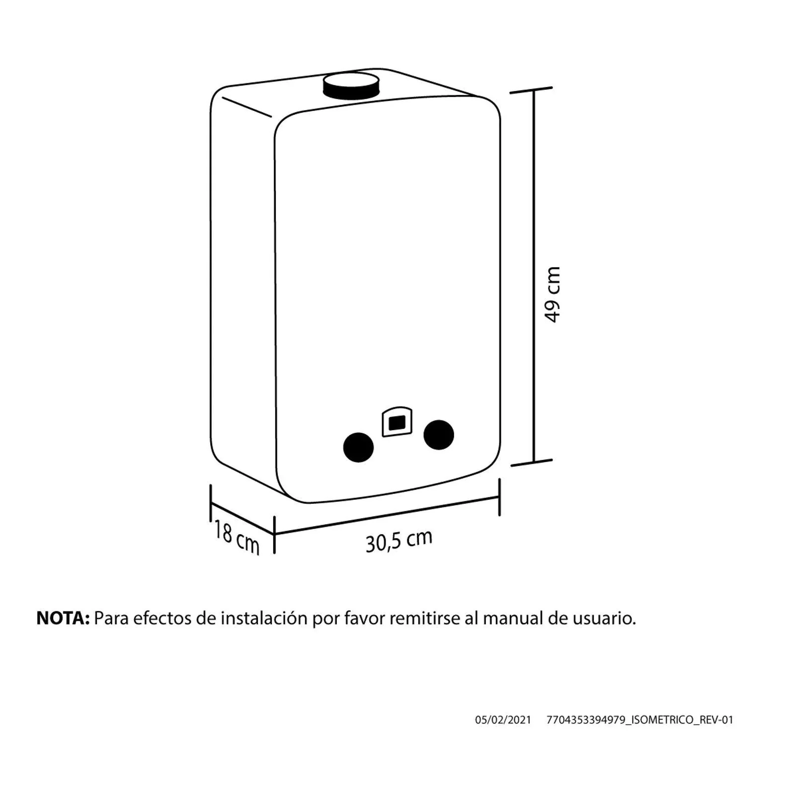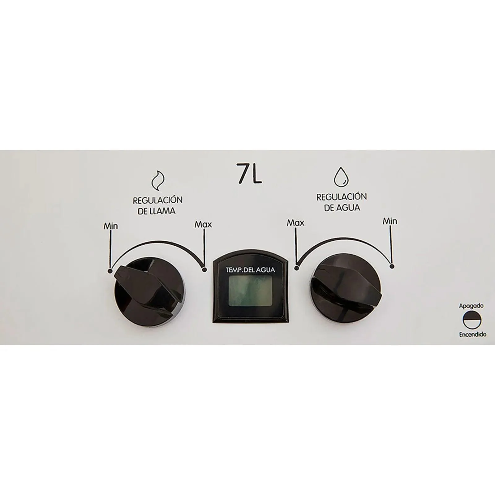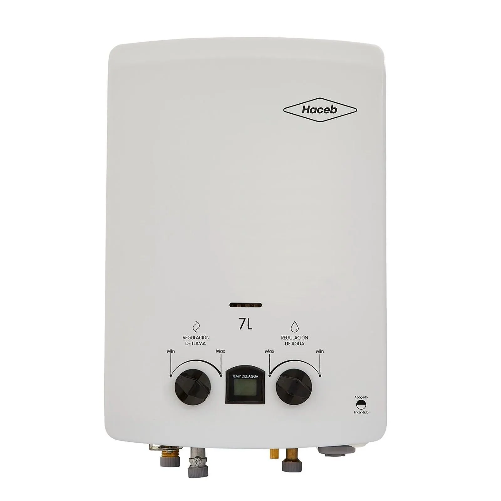 Calentador de agua, paso a gas natural, capacidad de 7 Lts por minuto, tiro natural, temperatura regulable y Display indicador para visualizar la temperatura de salida del agua e información de funcionamiento.