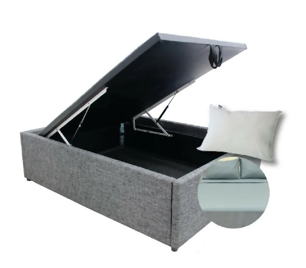 Está diseñado para generar comodidad y ahorrar espacio ya que su diseño como baúl nos permite almacenar ropa hogar (Tendidos, toallas, sabanas, etc.), además cuanta con un sistema hidráulico que soporta un peso de hasta 400N como soporte de la tapa y el Colchón cuando está abierto, el colchón no debe superar los 22 cm de altura y un peso de 28 kg.