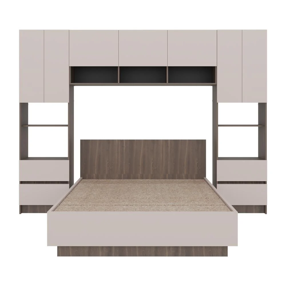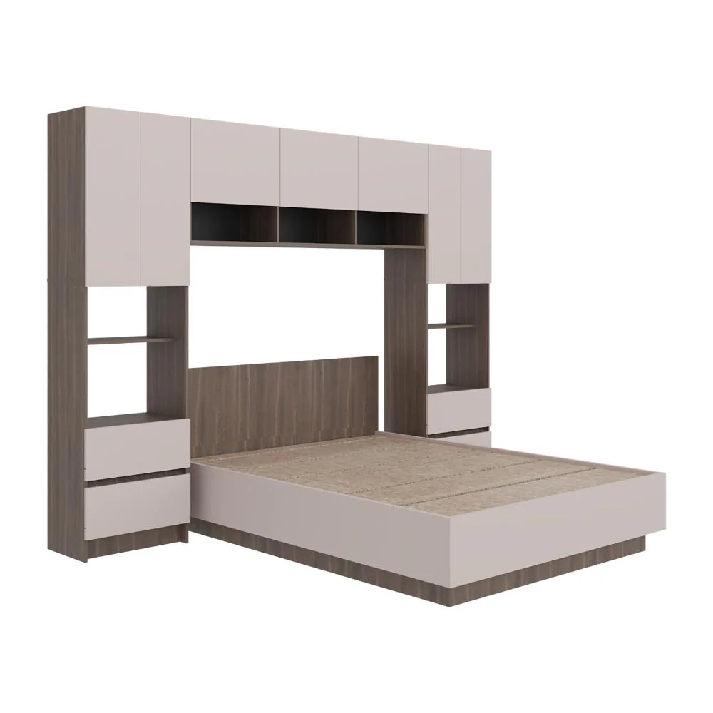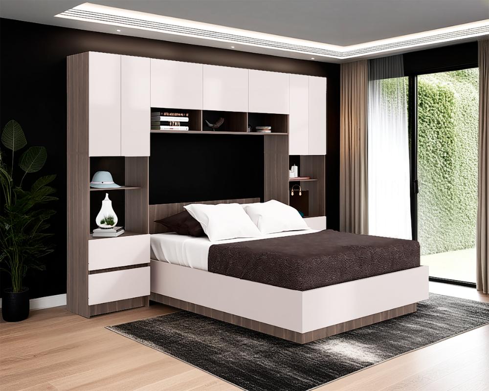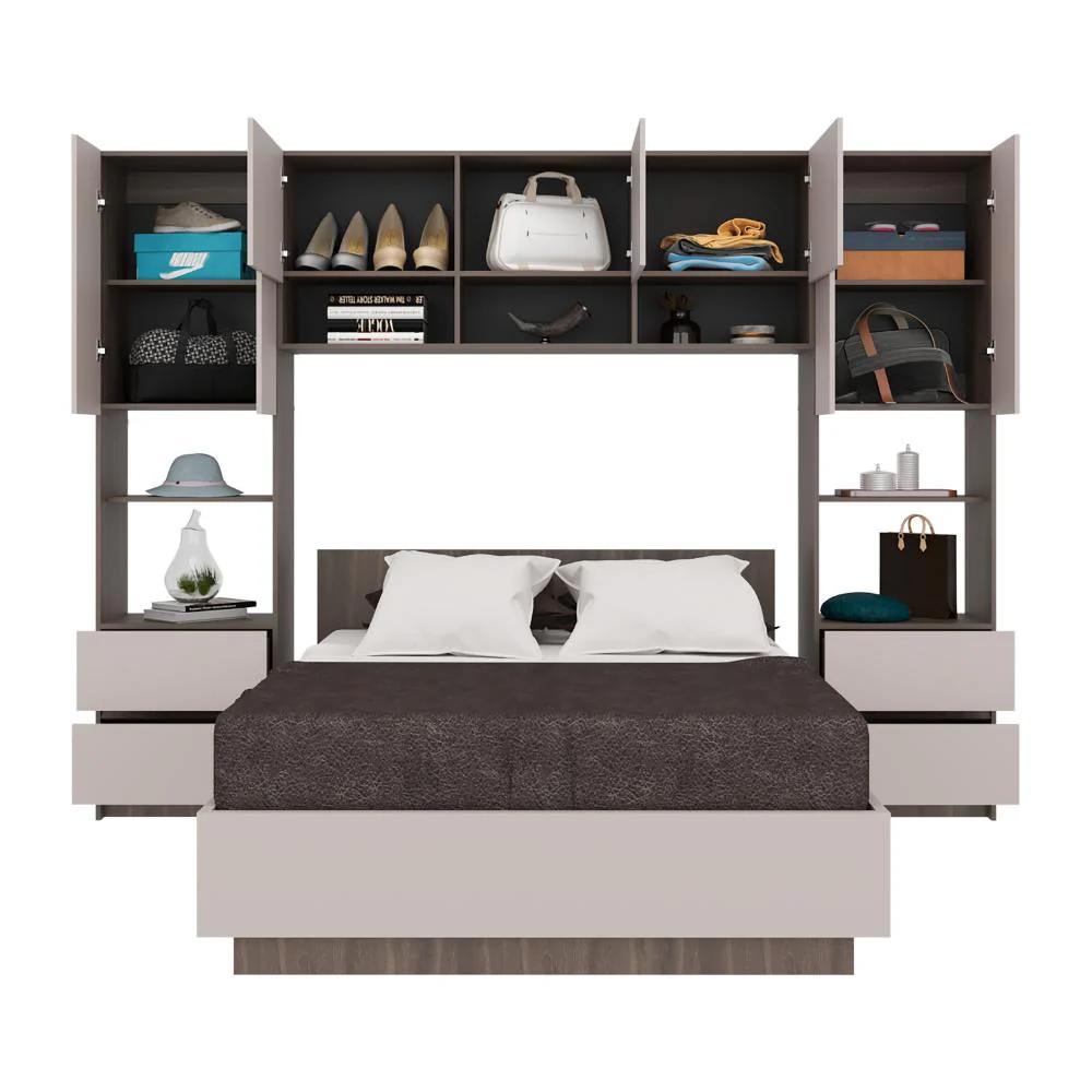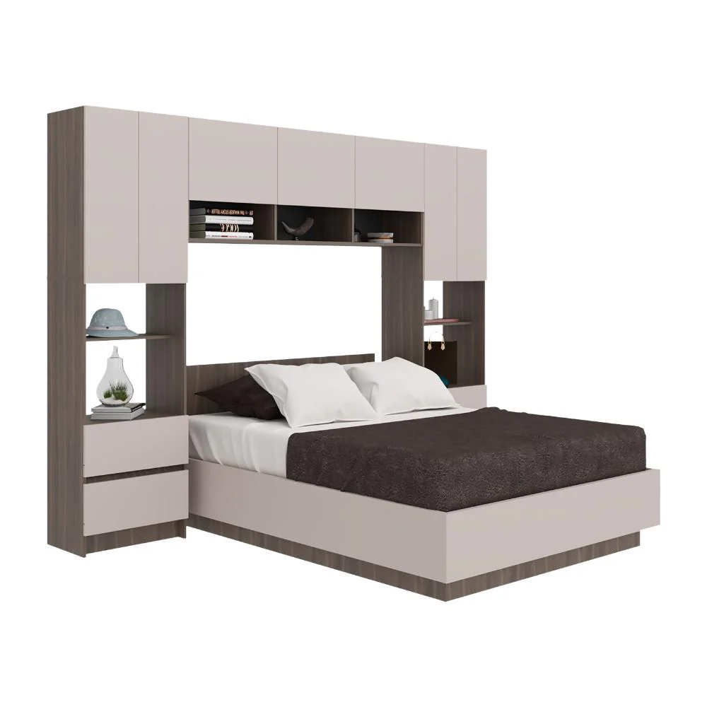 Cama y Closet, incluye tendido de tablas – cama 140 x 190, closet con 4 cajones y 7 puertas, con amplios espacios de almacenamiento. NO INCLUYE COLCHÓN