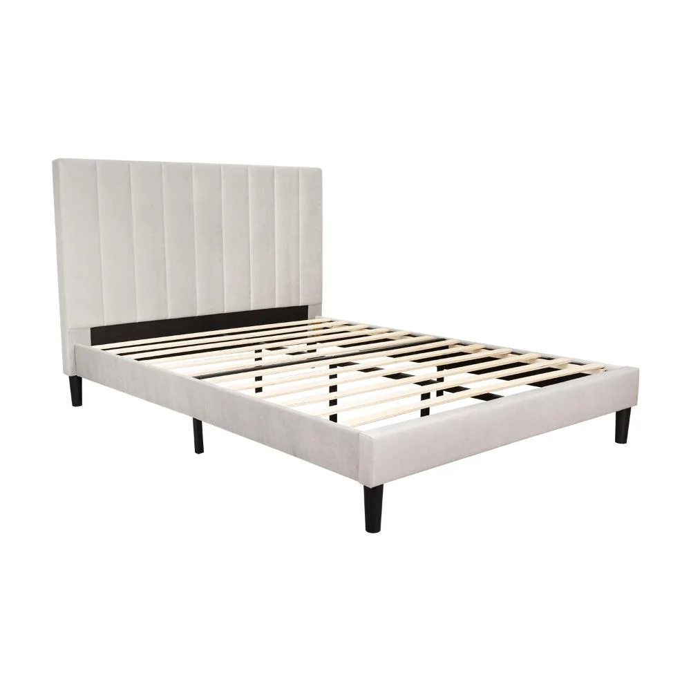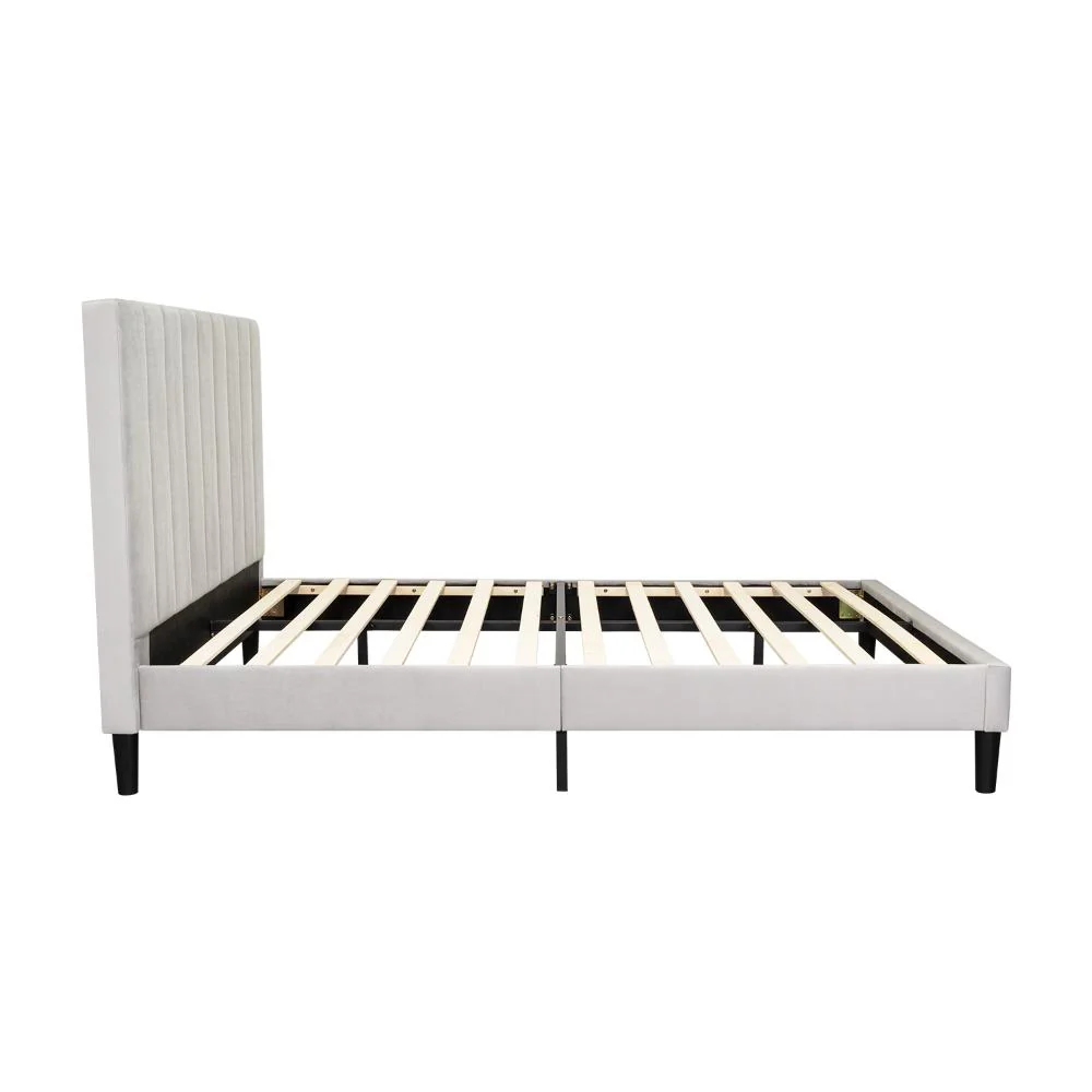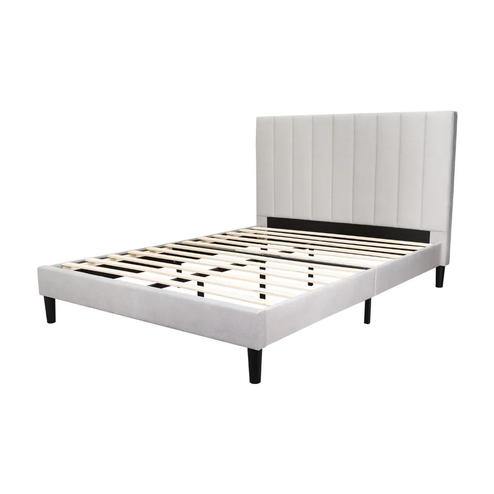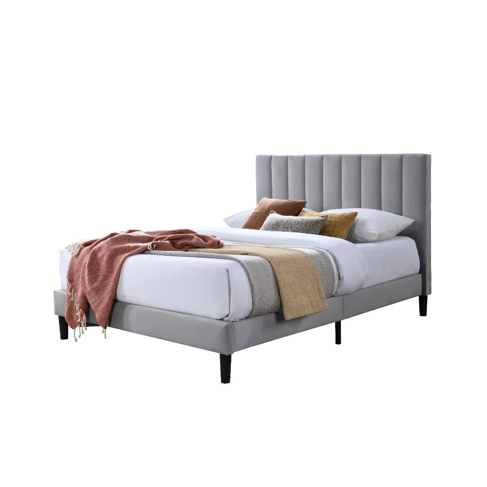 Cama Doble Lisa, Gris Claro, madera roble tapizada