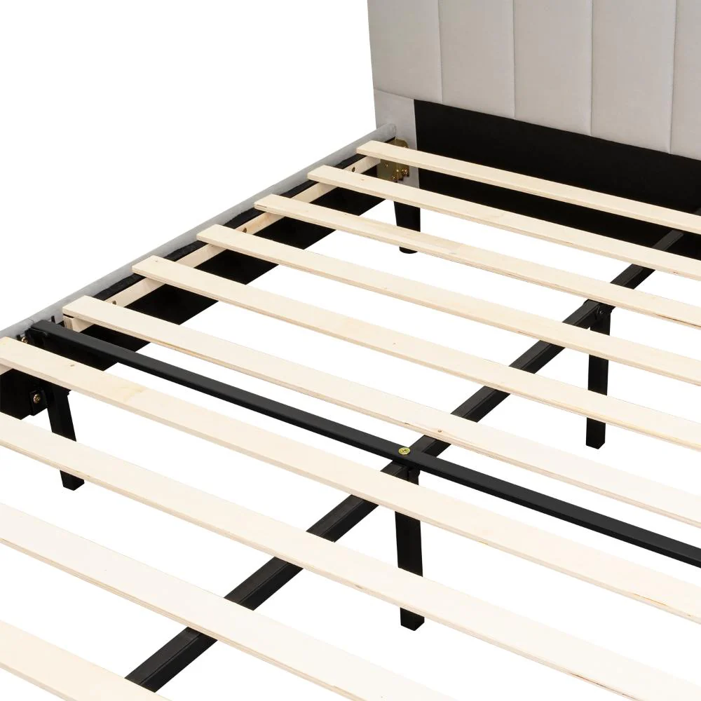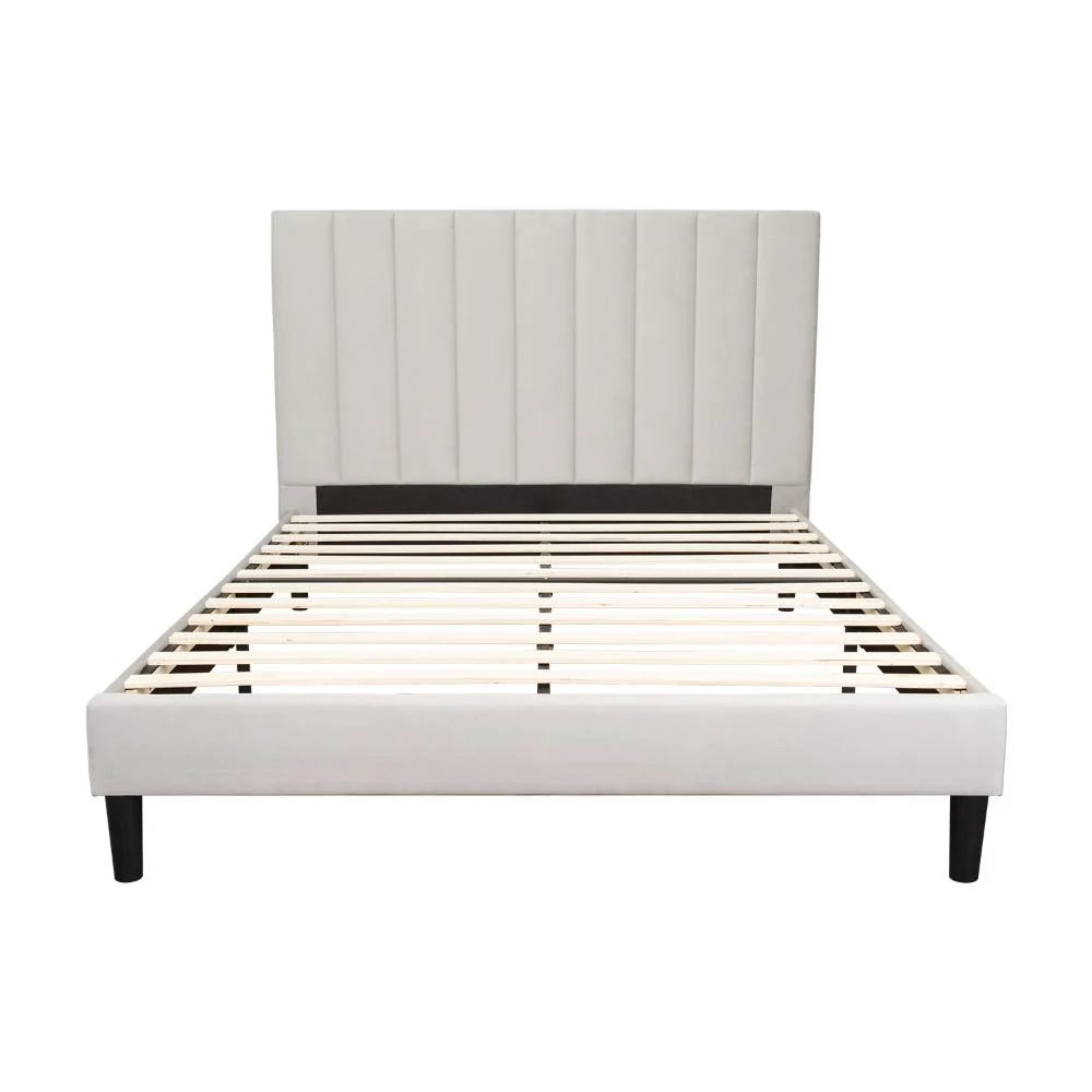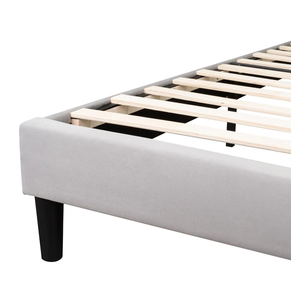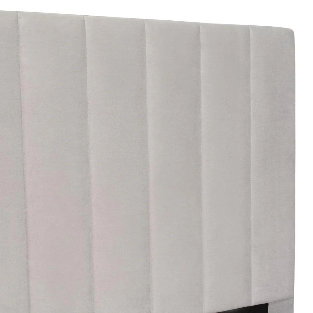 Cama Doble Lisa, Gris Claro, madera roble tapizada