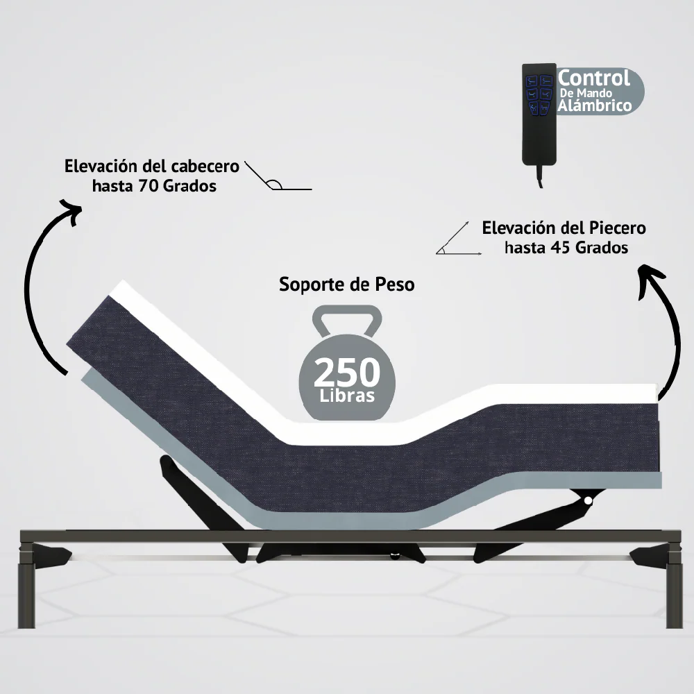 Te presentamos nuestra avanzada Cama Ajustable Eléctrica, diseñada específicamente para adaptarse a ti.