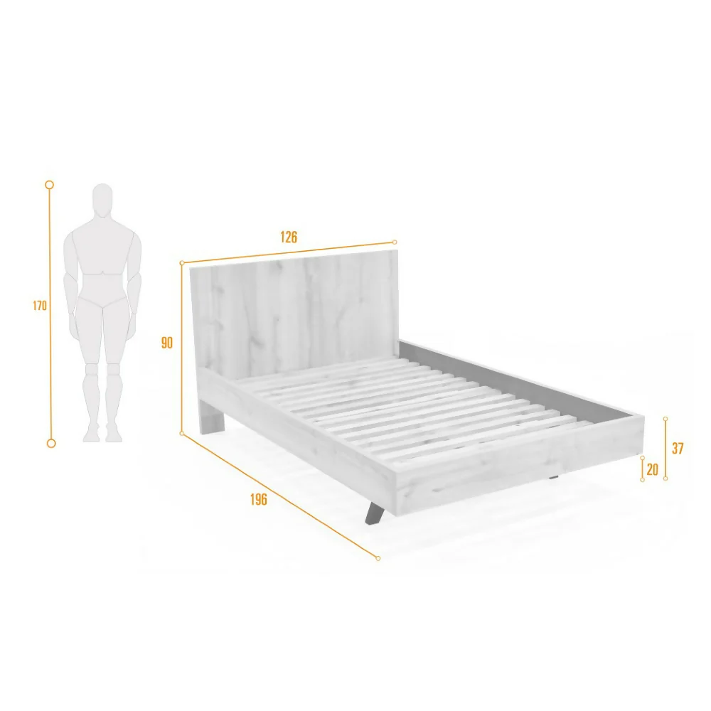 La Cama Libia Semidoble está fabricada en una fuerte estructura de MDP, cuenta con un tendido de tablas y patas en madera pino inmunizada naturalmente.