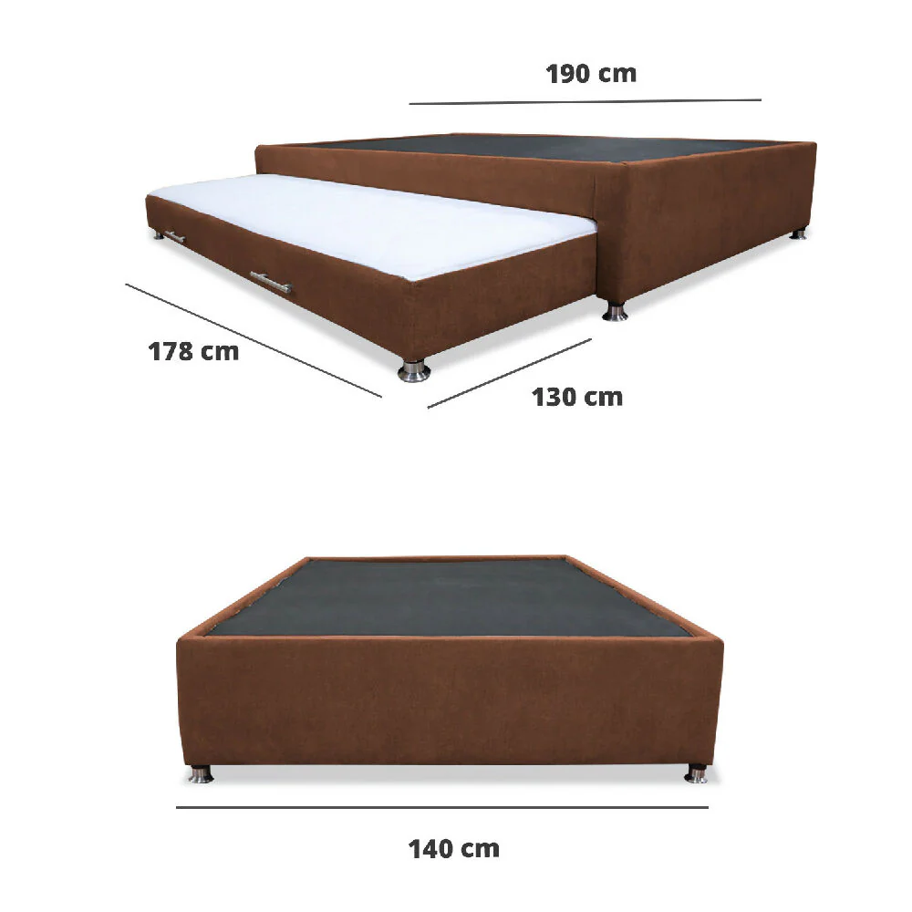 Cama Tarima Nido Kunz 140×190 y Cama auxiliar de 130×178, Tela tipo Lino Color Marrón, que ahorra espacio sin arriesgar comodidad, estructura fabricada en madera Pino inmunizada.