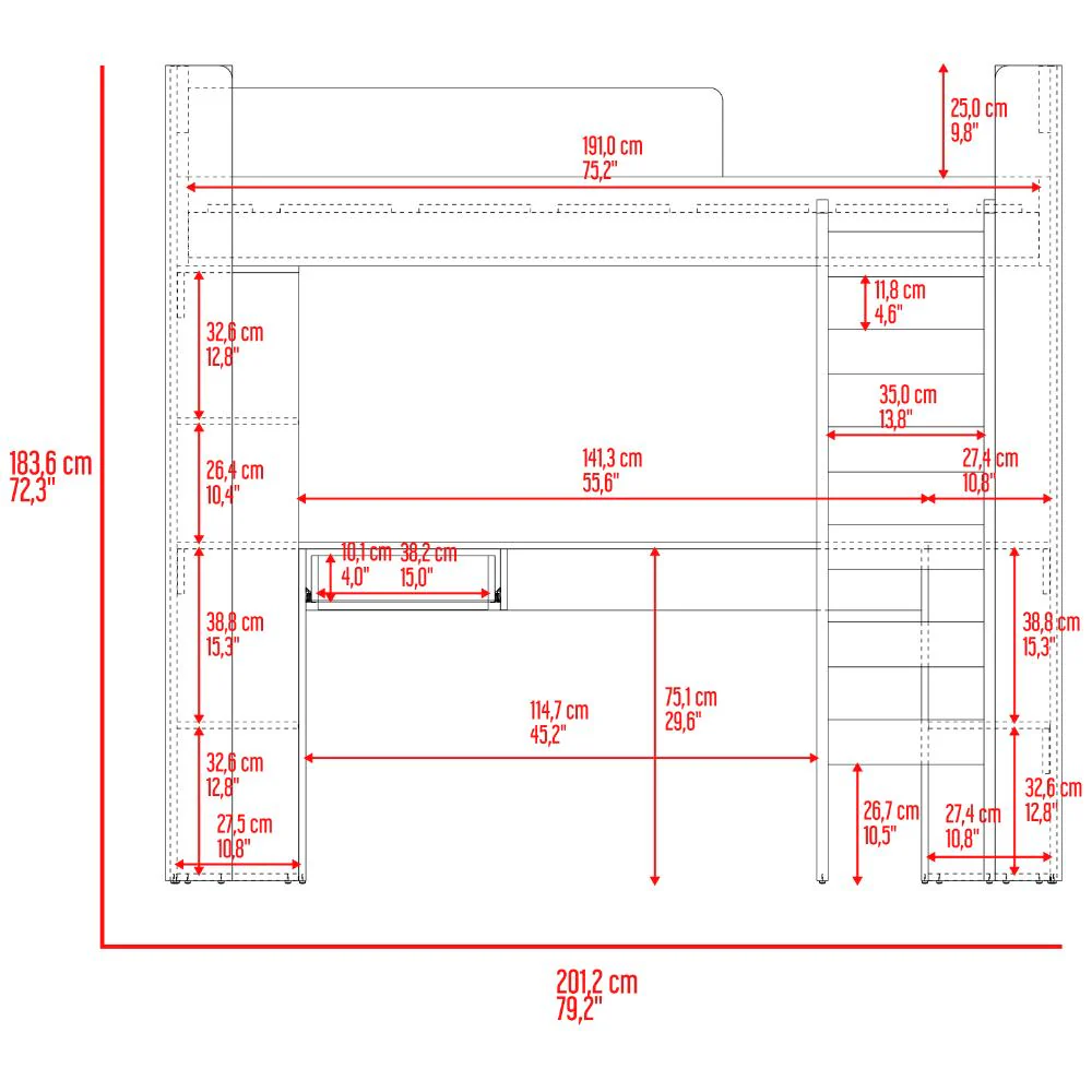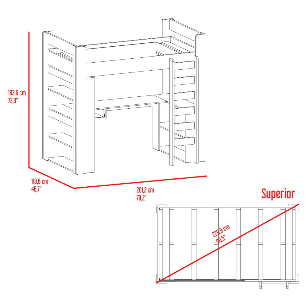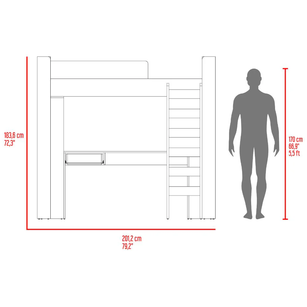 Camarote, multifuncional con escaleras fijas, cajón para guardar implementos.