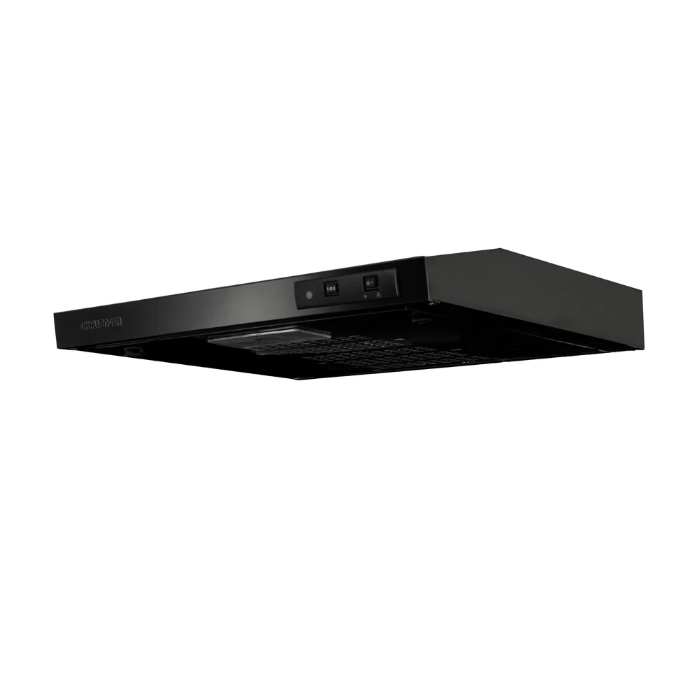 • Campana en lámina CR prepintada negra y acero inoxidable de 60 cm de fácil limpieza.