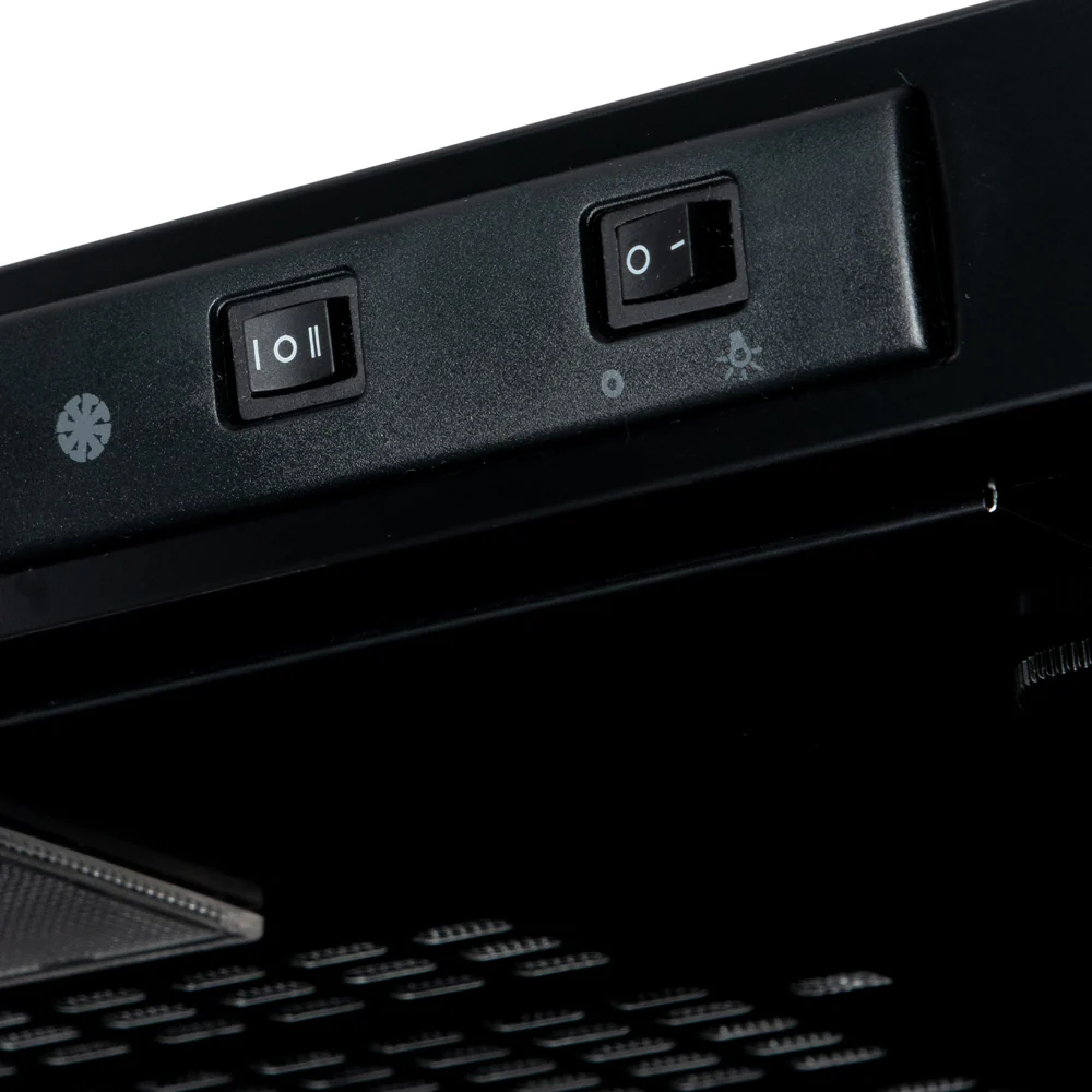 Con un tamaño de 61 cm de ancho y 50 cm de profundidad, se adapta perfectamente a cocinas de diferentes dimensiones. Su motor de 100 W y dos velocidades permiten ajustar la potencia según tus necesidades, garantizando un ambiente libre de olores y humo mientras cocinas.