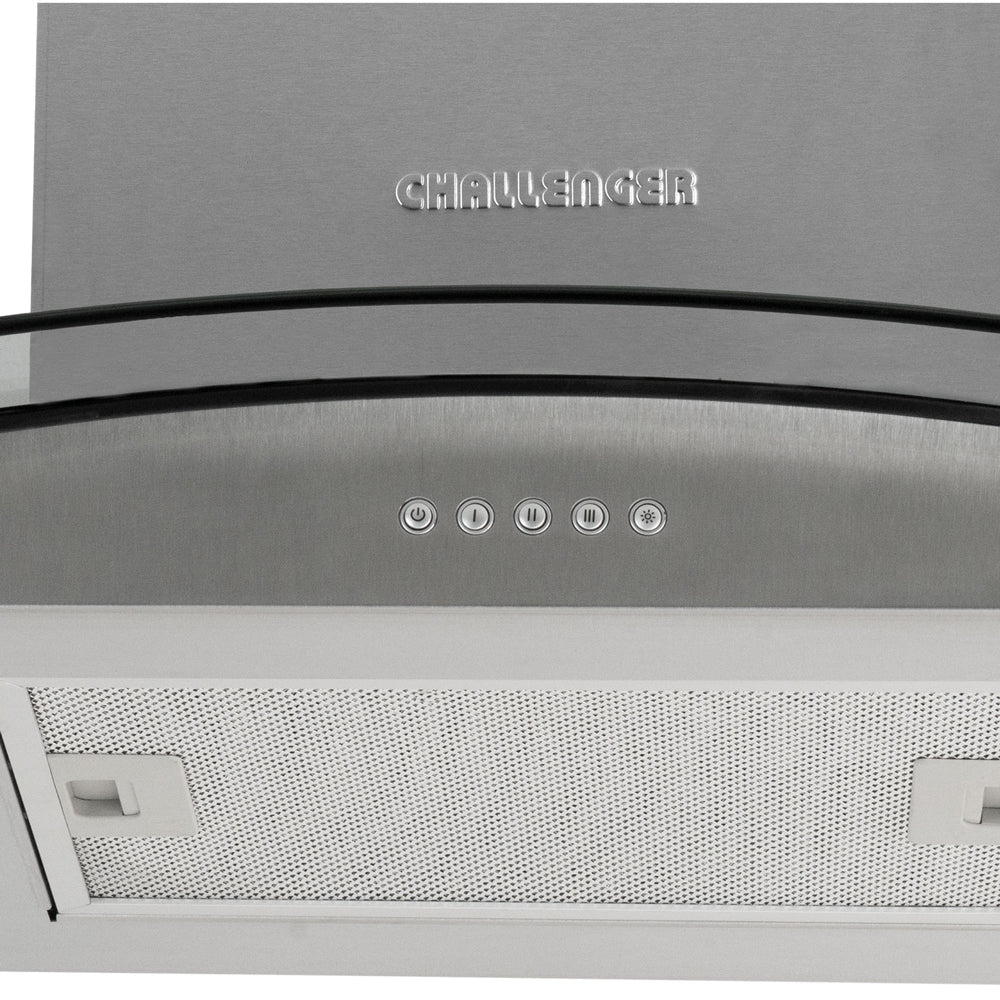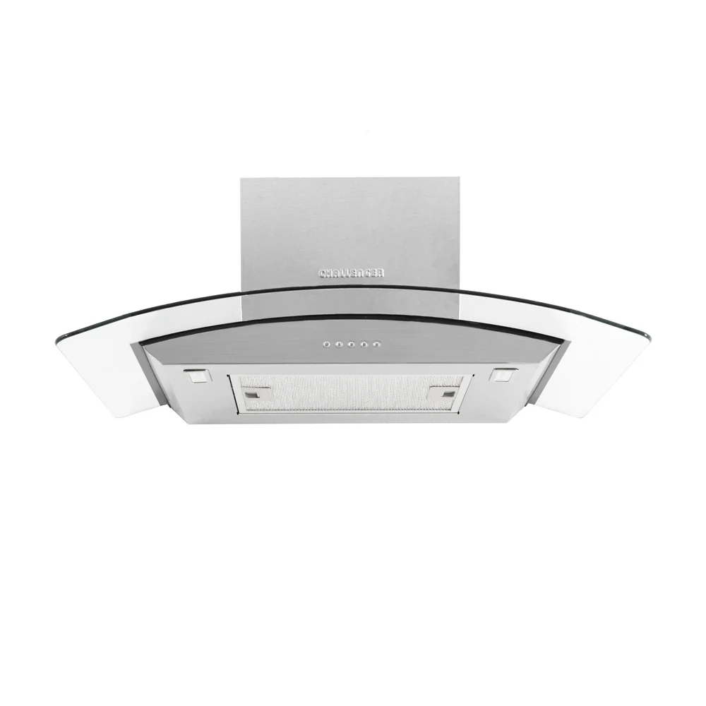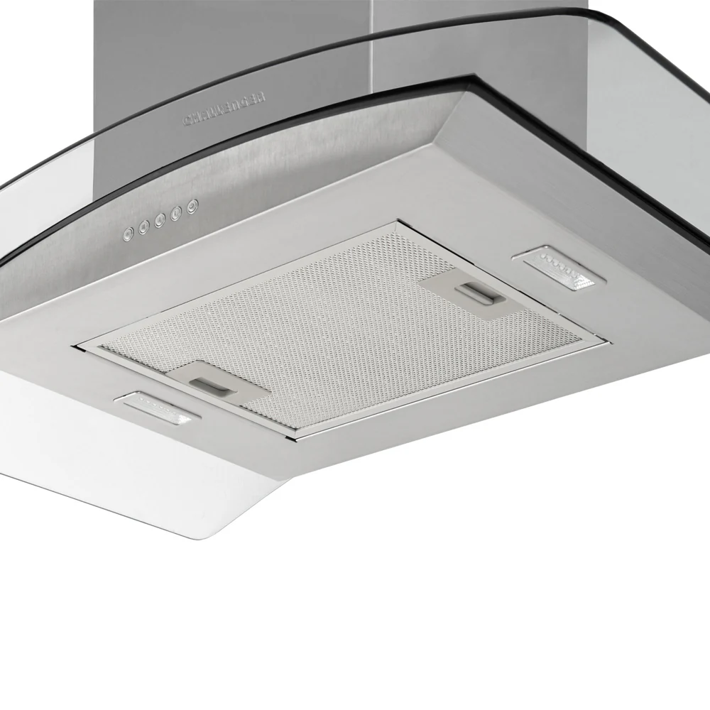 • Campana en vidrio curvo templado y con frente en acero inoxidable de 60 cm de fácil limpieza.