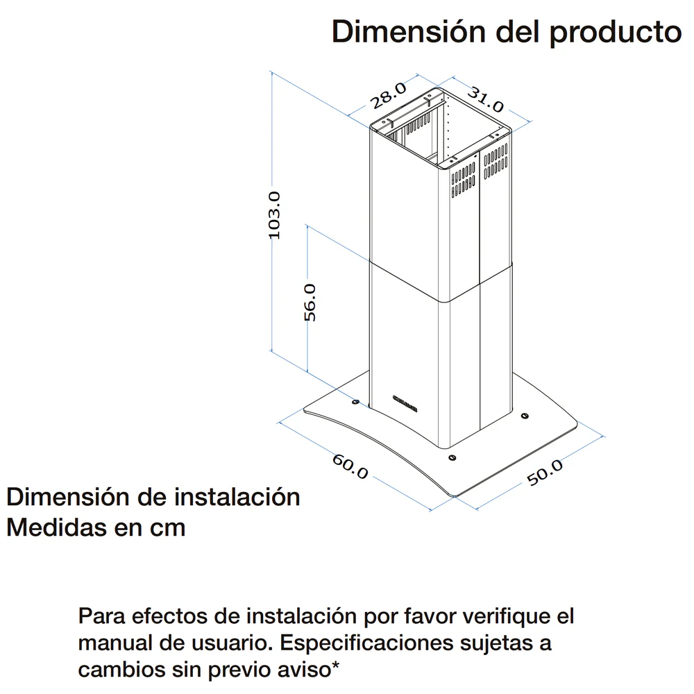 Campana La Campana Challenger CX 4660 Isla de 60 cm es la solución ideal para quienes buscan un extractor eficiente y elegante para su cocina. Con un diseño moderno en acero inoxidable y vidrio, esta campana no solo complementa la estética de tu espacio, sino que también ofrece un rendimiento excepcional. Su potente motor de 170 W permite una extracción máxima de 750 m³/h, asegurando que el aire en tu cocina se mantenga limpio y libre de olores.