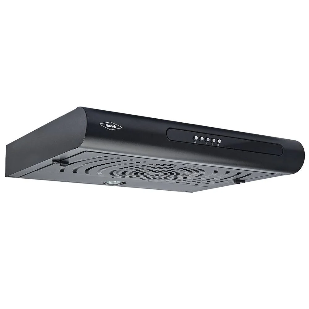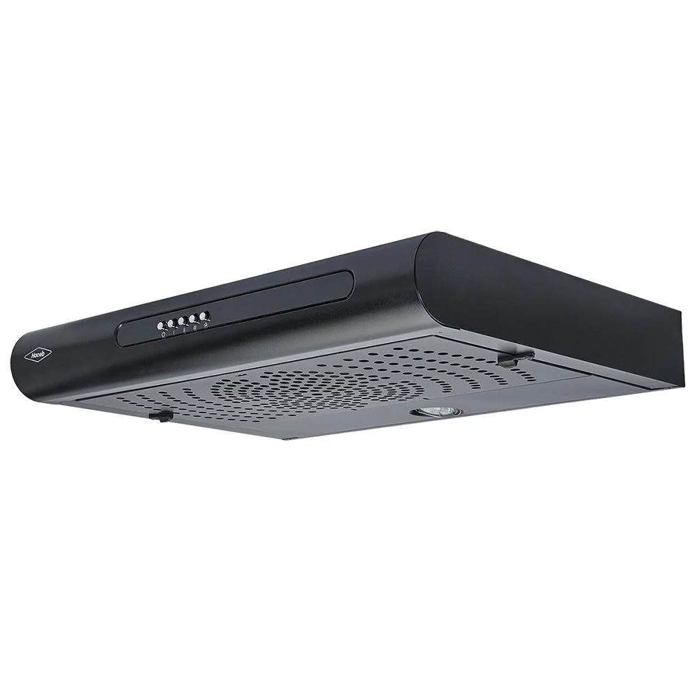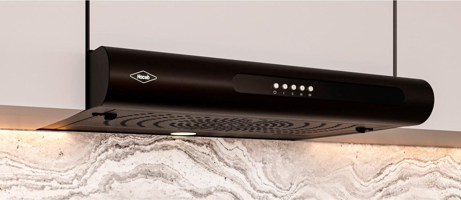 Campana Horizontal Negra de 60cm de ancho y con 3 niveles de operación. Diseño más delgado y liviano al tacto. Cuenta con filtros de carbón activado y atrapa grasas que te ayuda a disminuir la cantidad de grasa que se adhiere a la superficie de tu cocina y a minimizar los olores producidos durante los procesos de cocción. Su iluminación halógena es de alto alcance. Producto Ecodiseñado que reduce el impacto ambiental en un 34%.