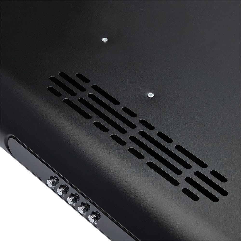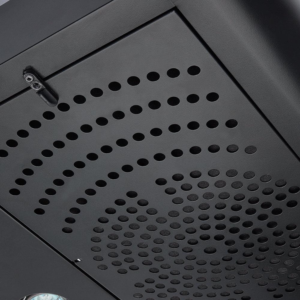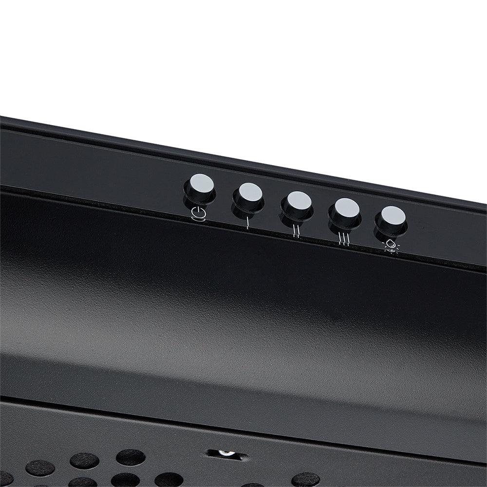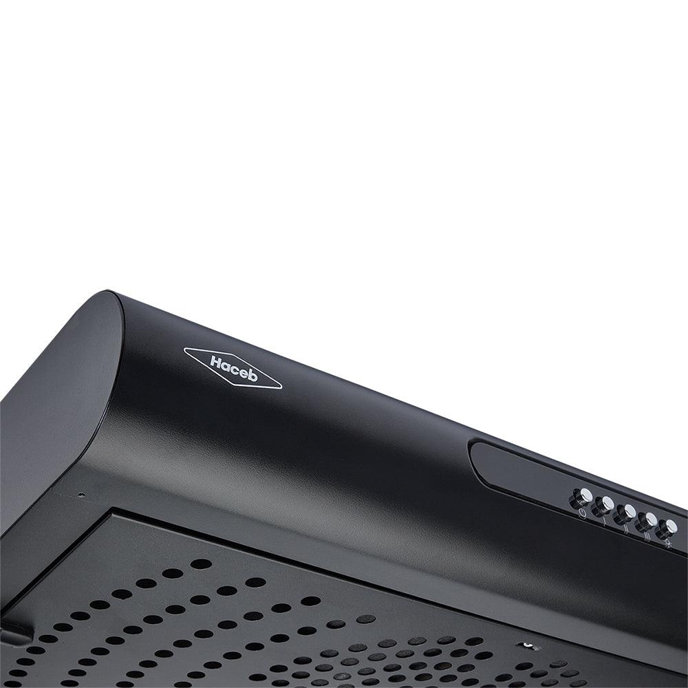 Campana Horizontal Negra de 60cm de ancho y con 3 niveles de operación. Diseño más delgado y liviano al tacto. Cuenta con filtros de carbón activado y atrapa grasas que te ayuda a disminuir la cantidad de grasa que se adhiere a la superficie de tu cocina y a minimizar los olores producidos durante los procesos de cocción. Su iluminación halógena es de alto alcance. Producto Ecodiseñado que reduce el impacto ambiental en un 34%.