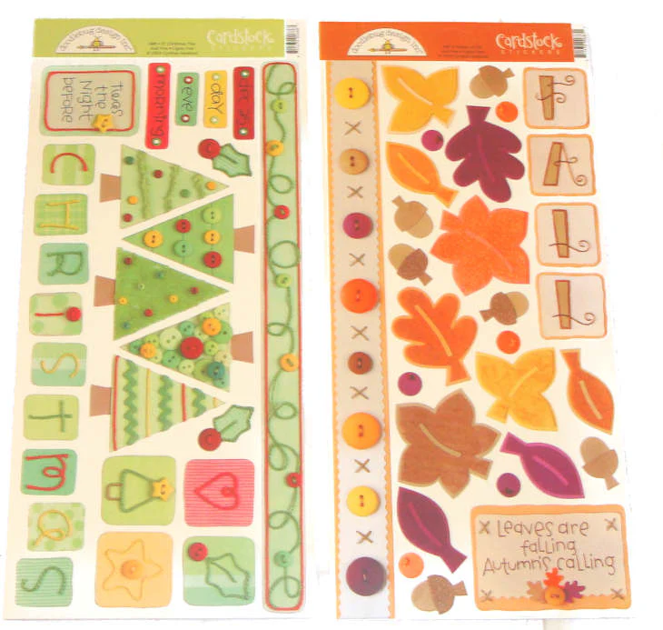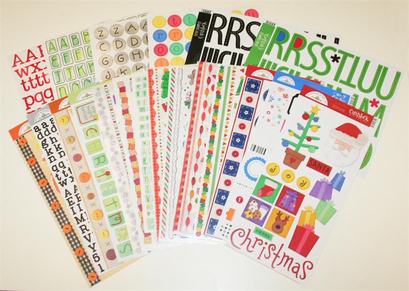 Paquete con 17 planillas de estampas (stickers) de cartulina con diversos temas. Navidad, Halloween, Alfabetos, otoño, cumpleaños, etc