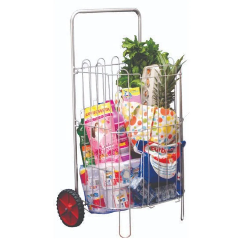 Carro Mercado, elaborado en Alambre, Tubería y Llantas Plásticas, Este tipo de carro es muy útil para transportar objetos, practico y plegable en color Gris.