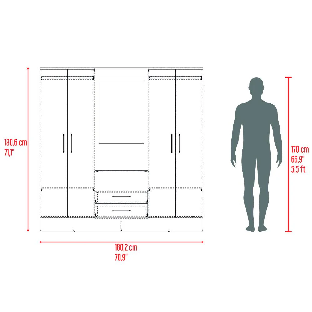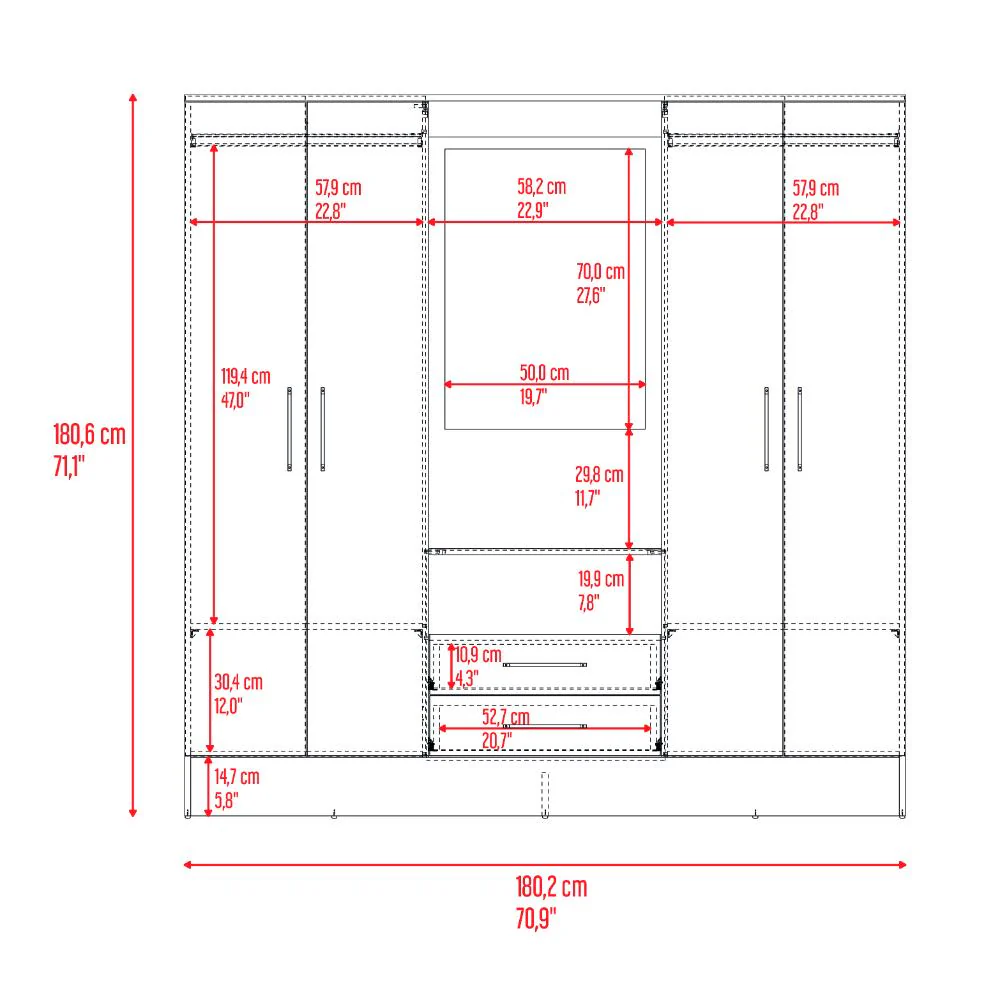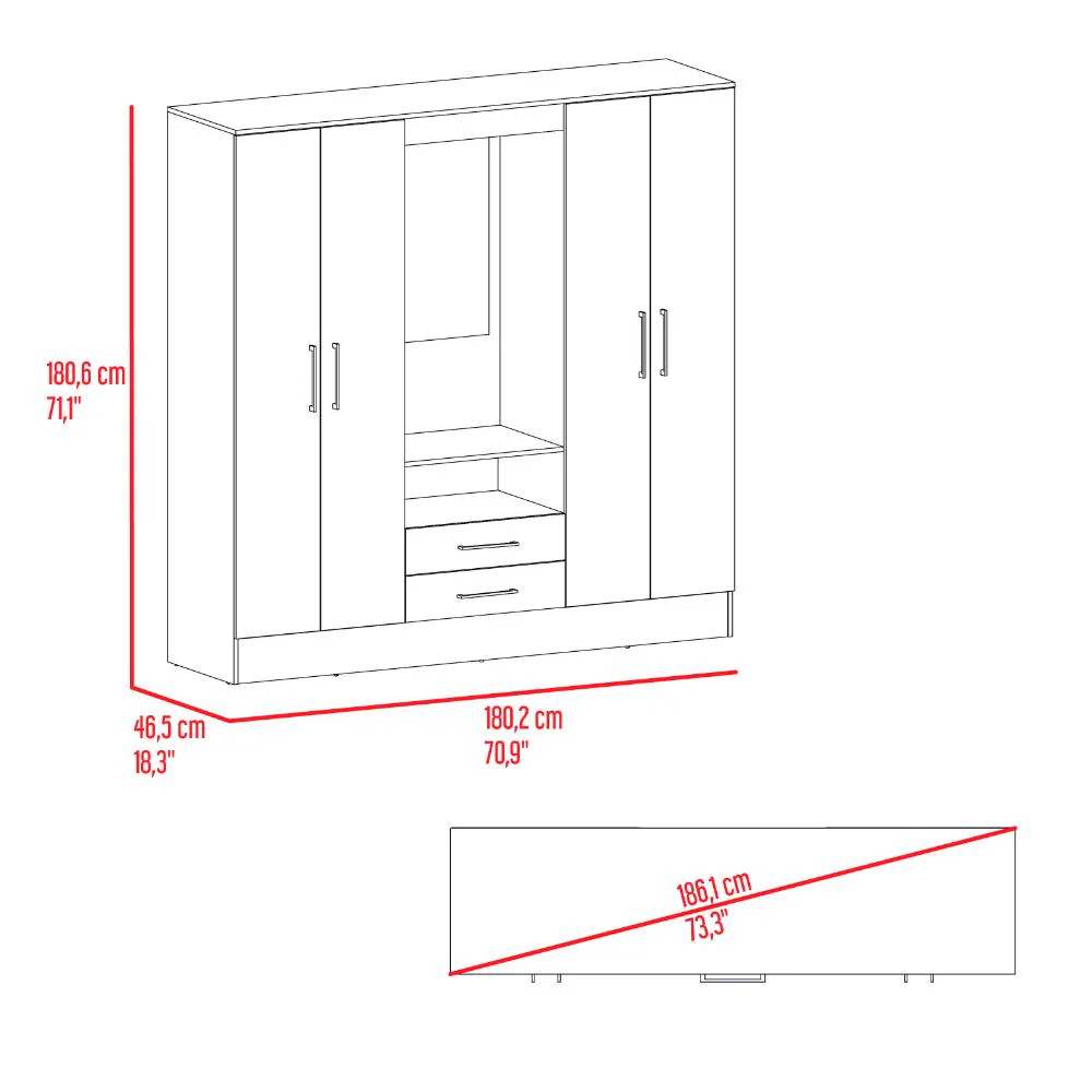 Closet, con amplios espacios y entrepaños para organizar, dos tubos de acero cromado para colgar, dos cajones organizadores multiusos y de facil instalación.
