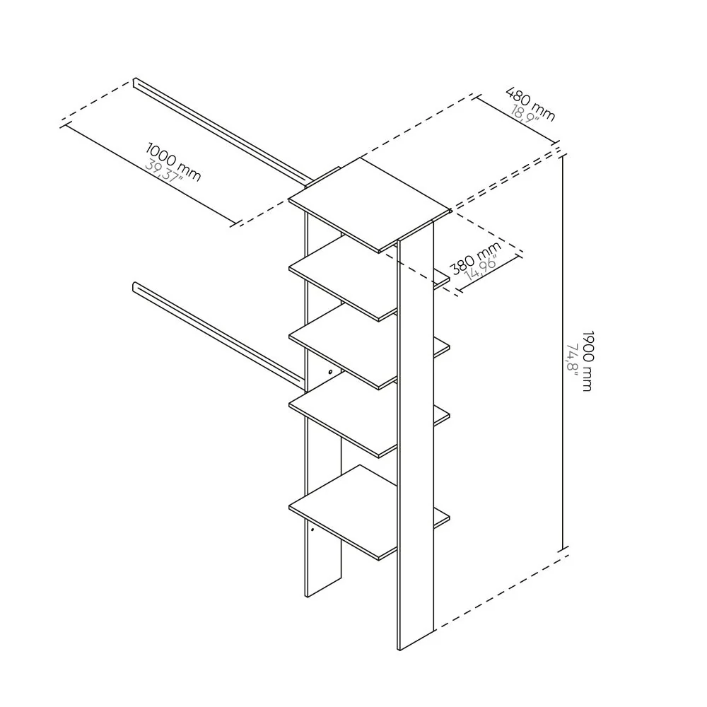 Closet, Espacio amplio ya que cuenta con 5 entrepaños y 2 colgadores, diseño moderno, materiales de alta calidad ya que se encuentra fabricado en MDP y melamina, Fácil de armar (Incluye instructivo de armado).