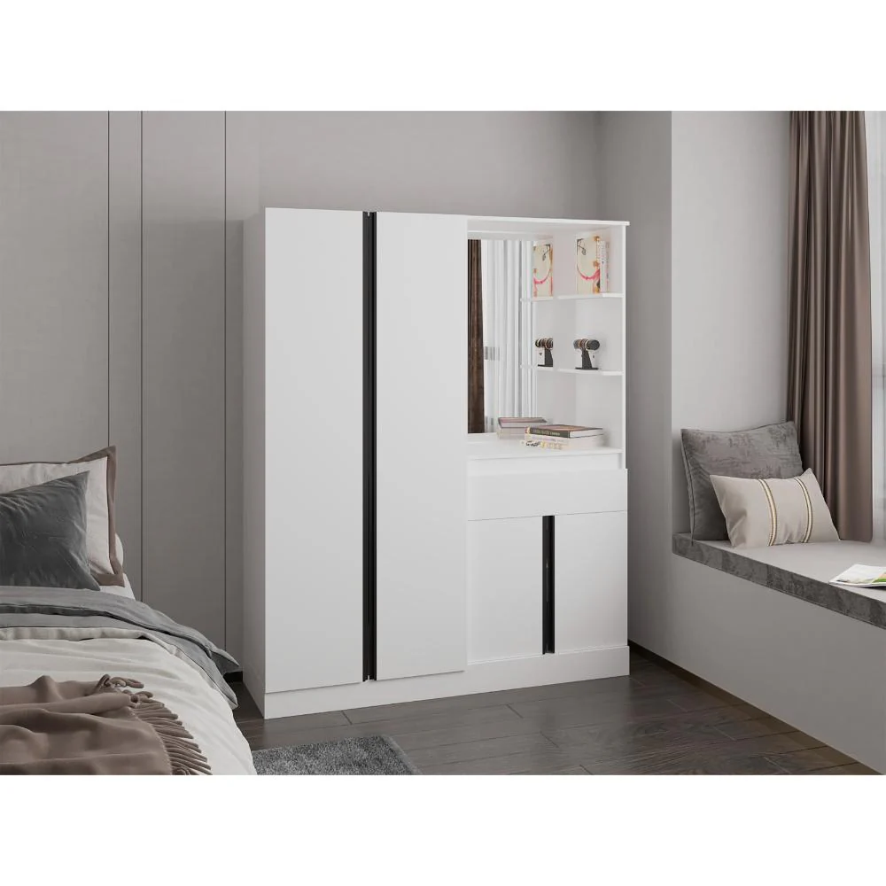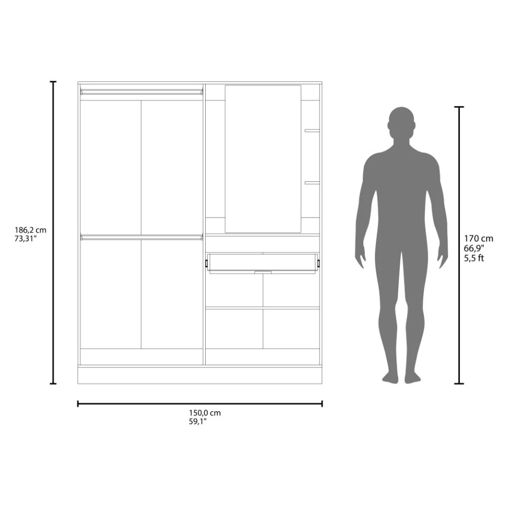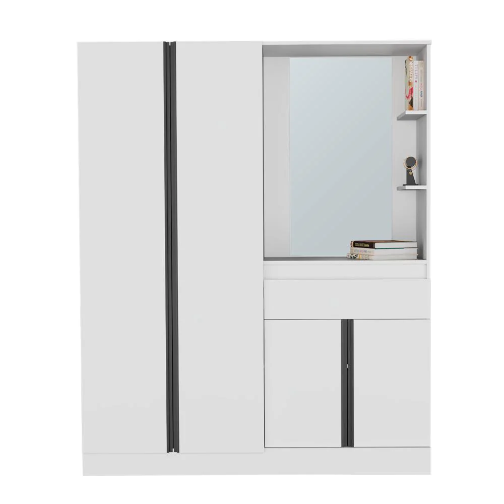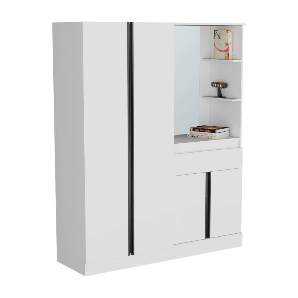 Elaborado en Madera aglomerada MDP, recubierta con láminas melamínicas de excelente calidad, en color Blanco Duqueza