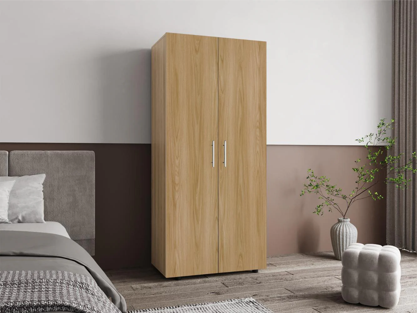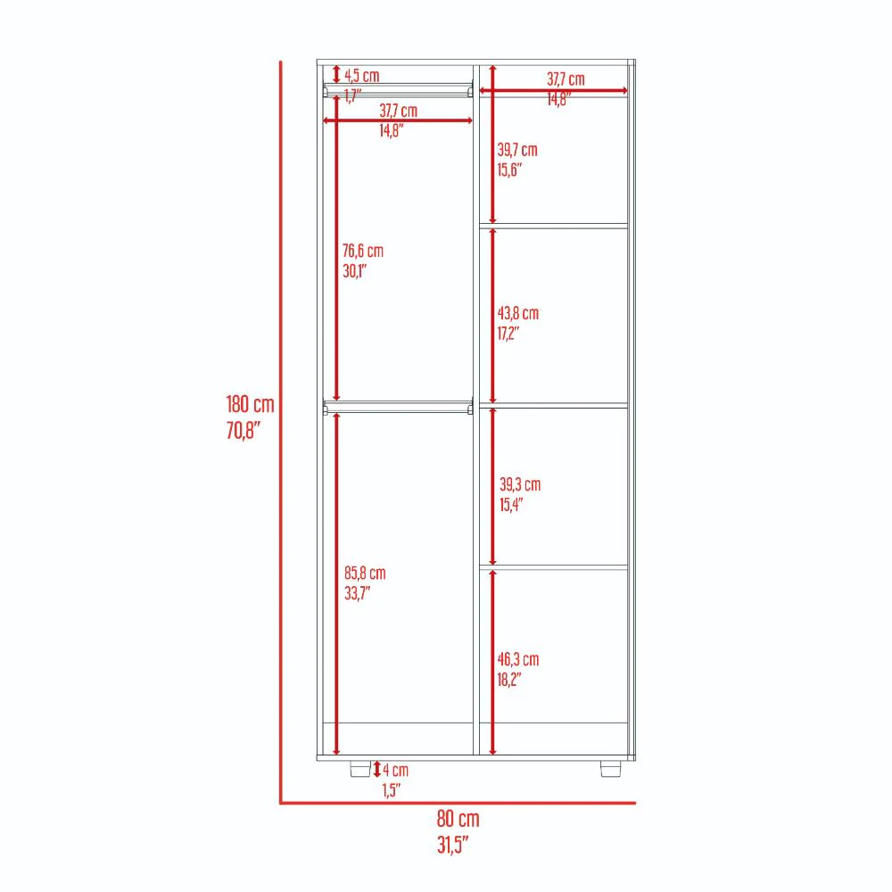 Closet, con 2 puertas abatibles, 2 tubos para colgar prendas, y entrepaños para organizar.